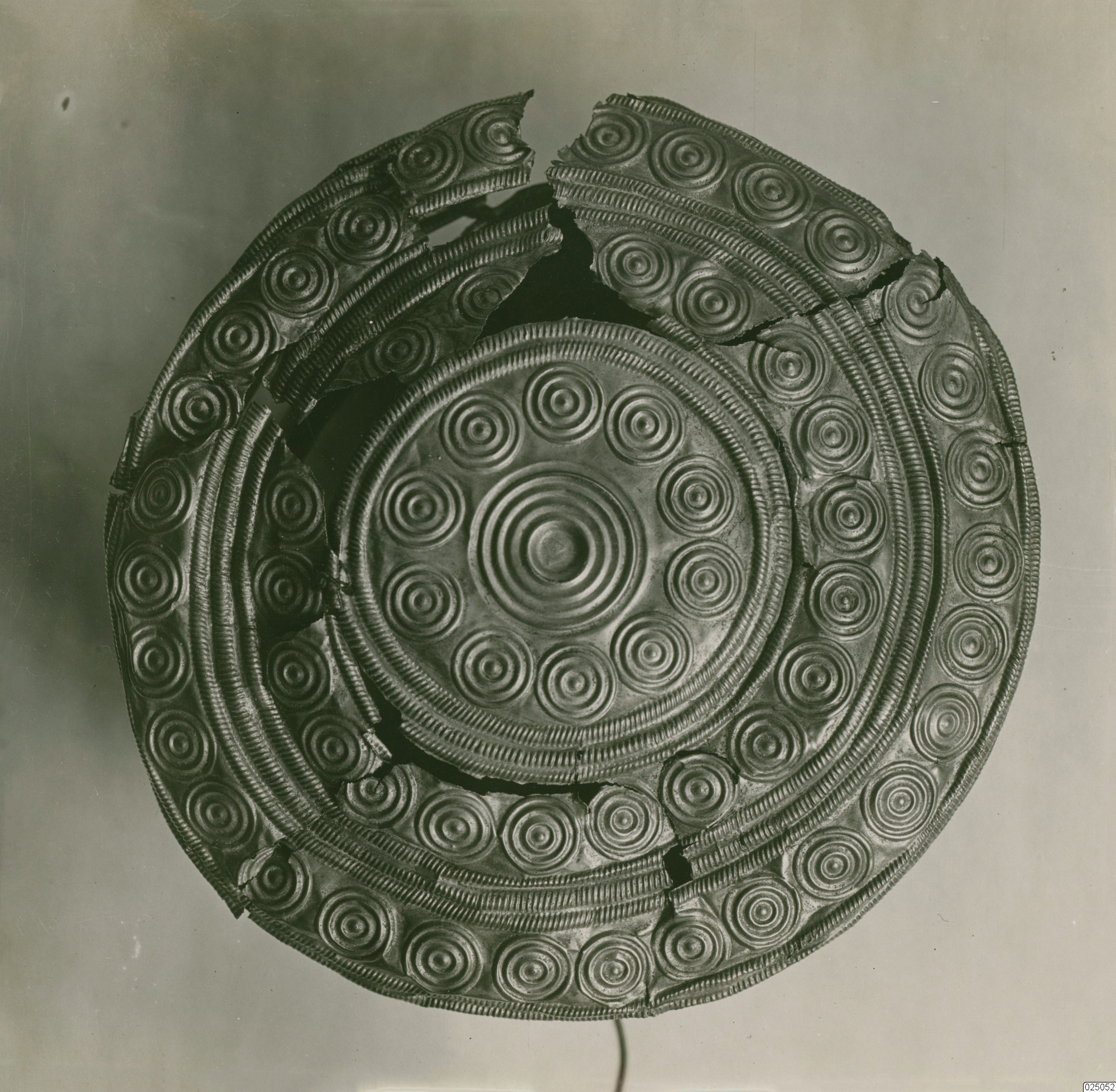 Skål i guld, hittad i Halland. Daterad bronsåldern (1100 f.Kr. – 900 f.Kr.)