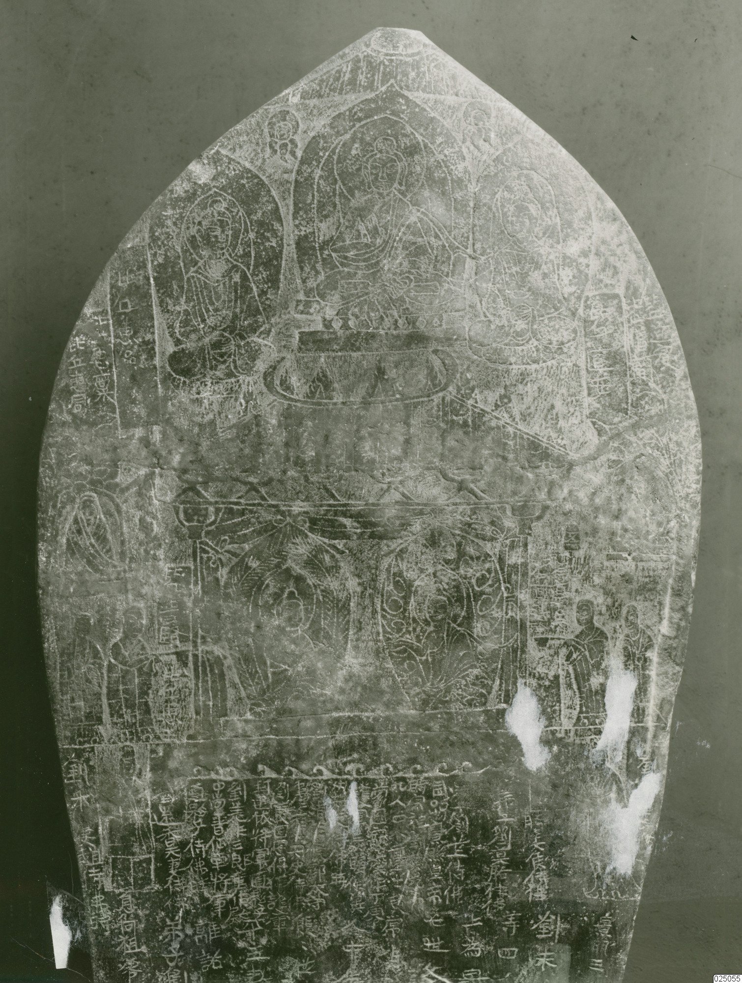 Baksidan av en buddhistisk stele i grå kalksten. Norra Wei-dynastin.