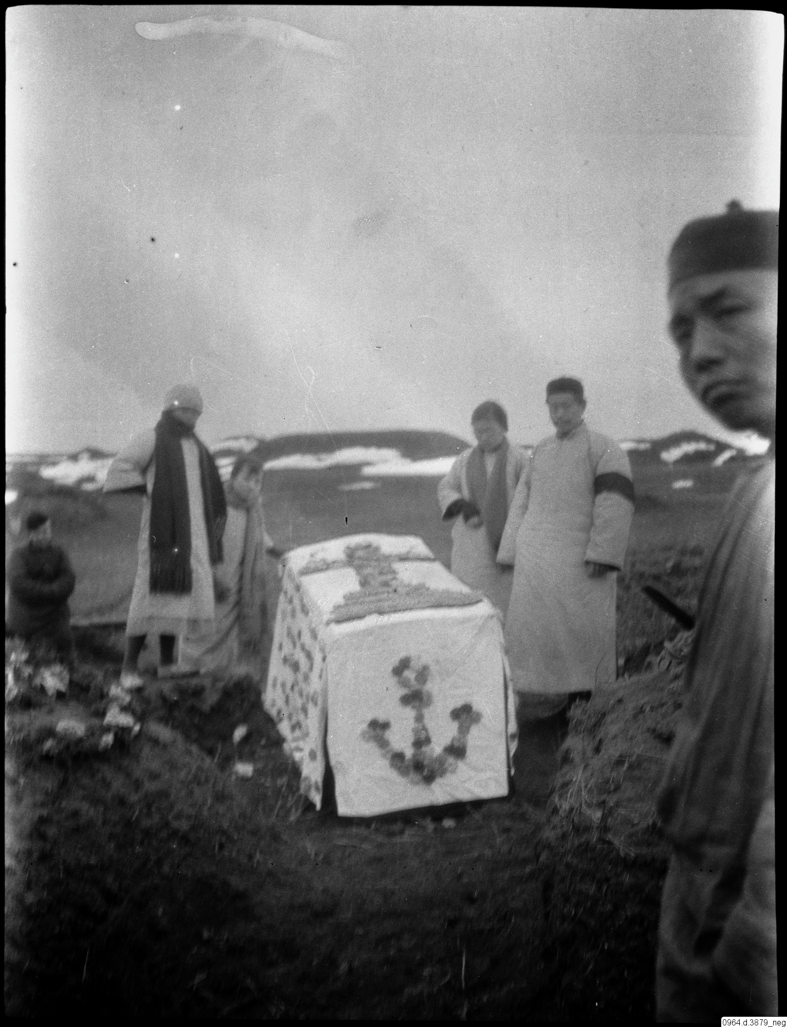gruppbild, kista, snö, begravning, vinterkläder, blomkransar, fotografi, photograph