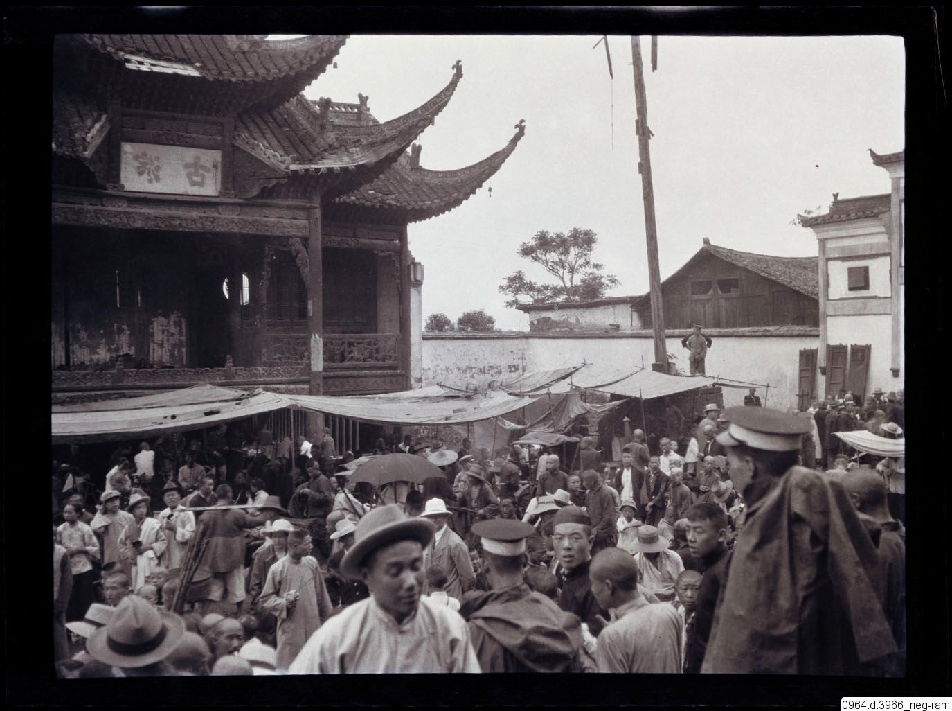 byggnad, uniform, folksamling, träsnideri, stånd, missionärer, fotografi, photograph