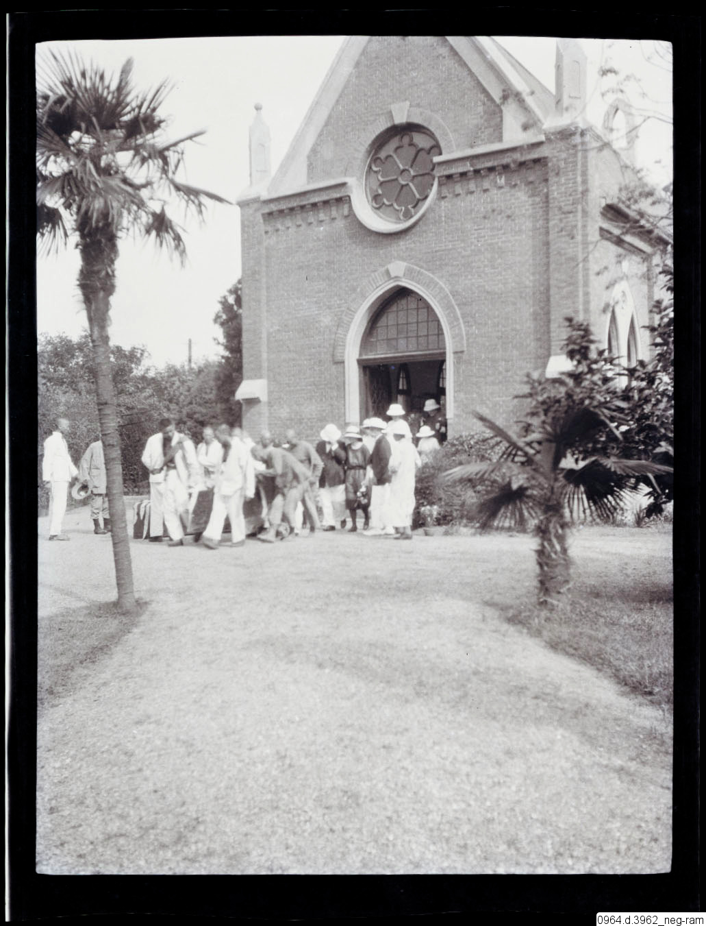 begravning, kista, kyrka, missionärer, byggnad, bärare, fotografi, photograph
