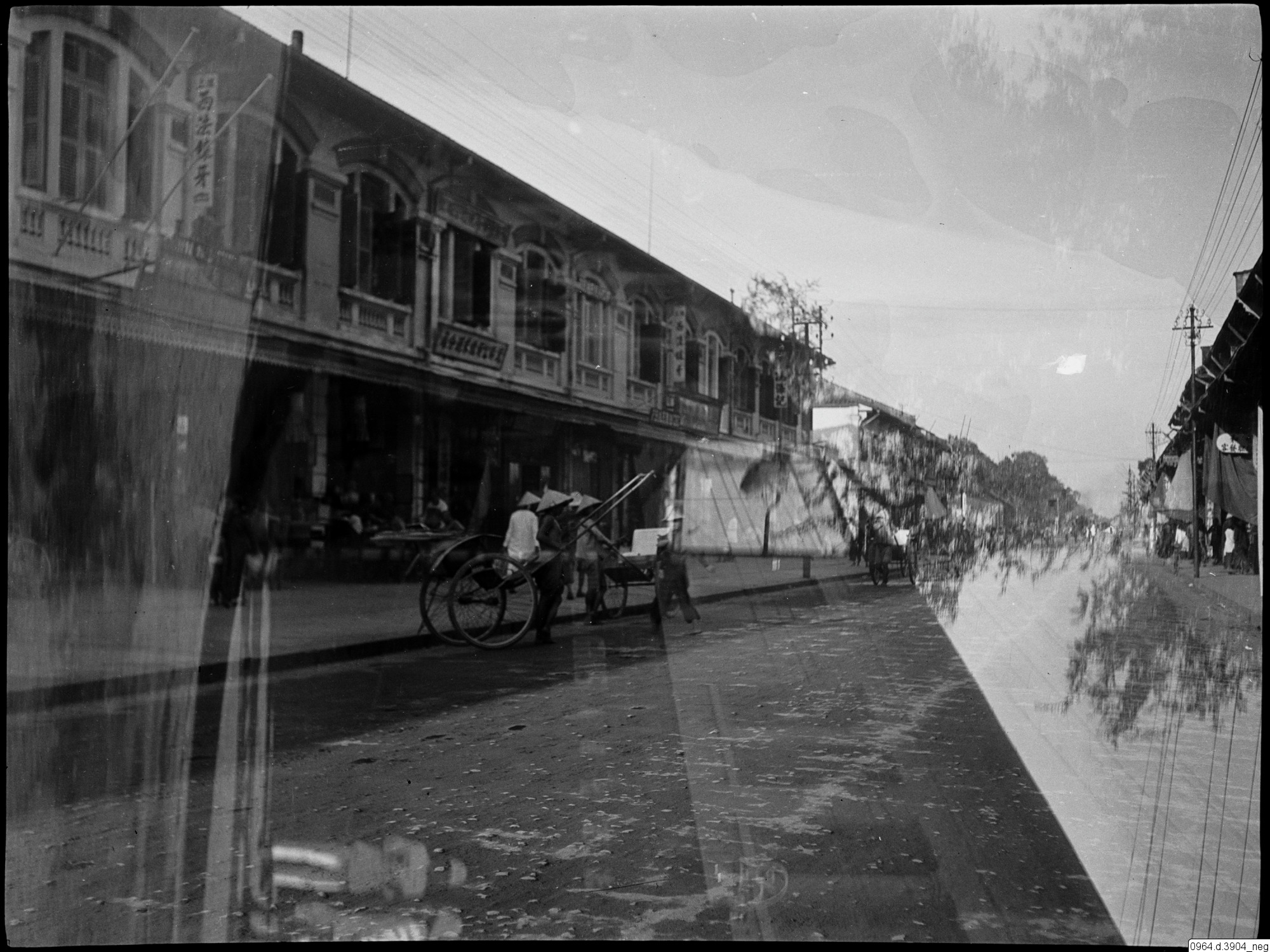 byggnader, gata, tropikhattar, rickshaws, skyltar, personer, fotografi, photograph