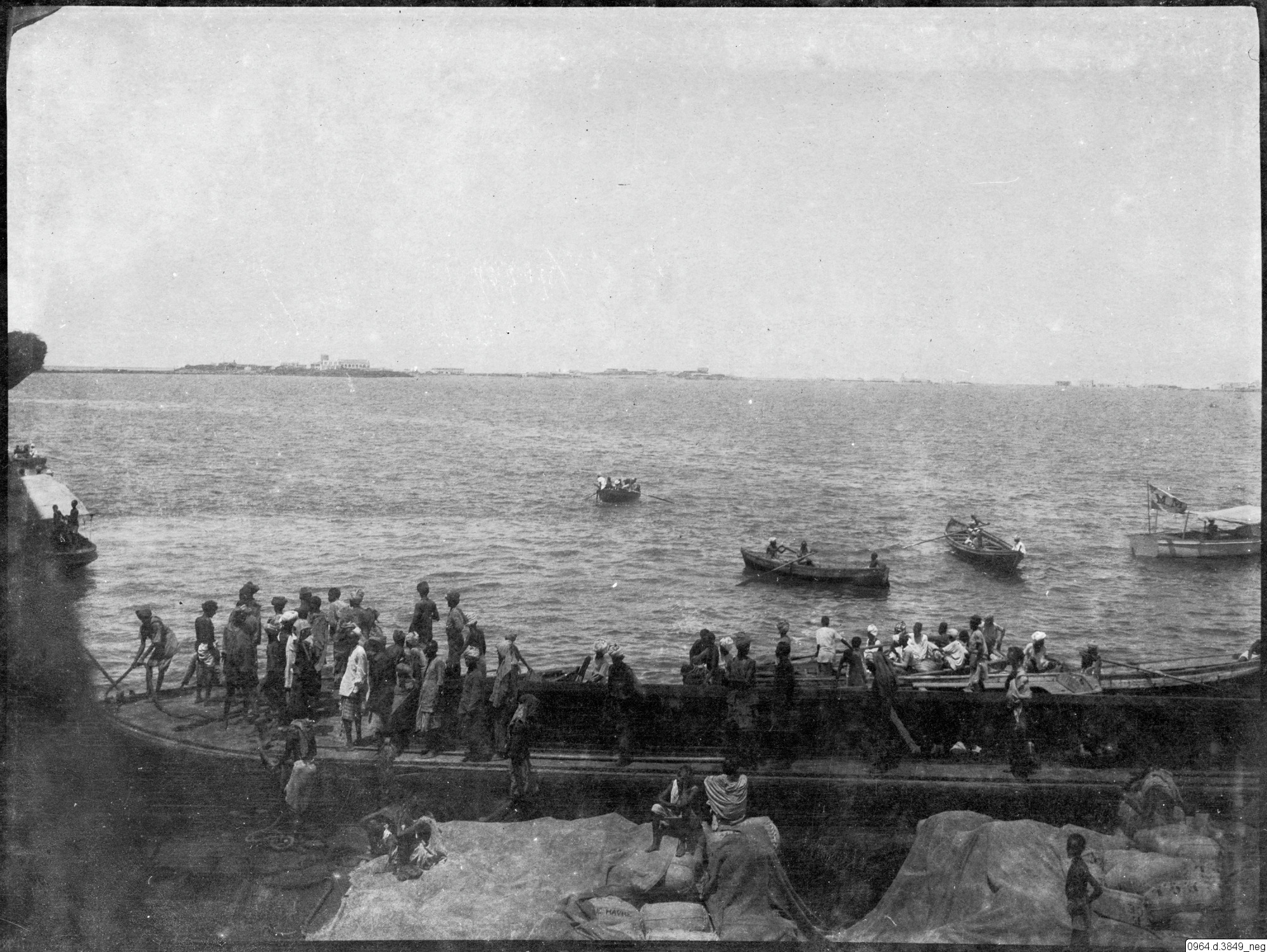 strand, byggnader, säckar, människor, båtar, fotografi, photograph