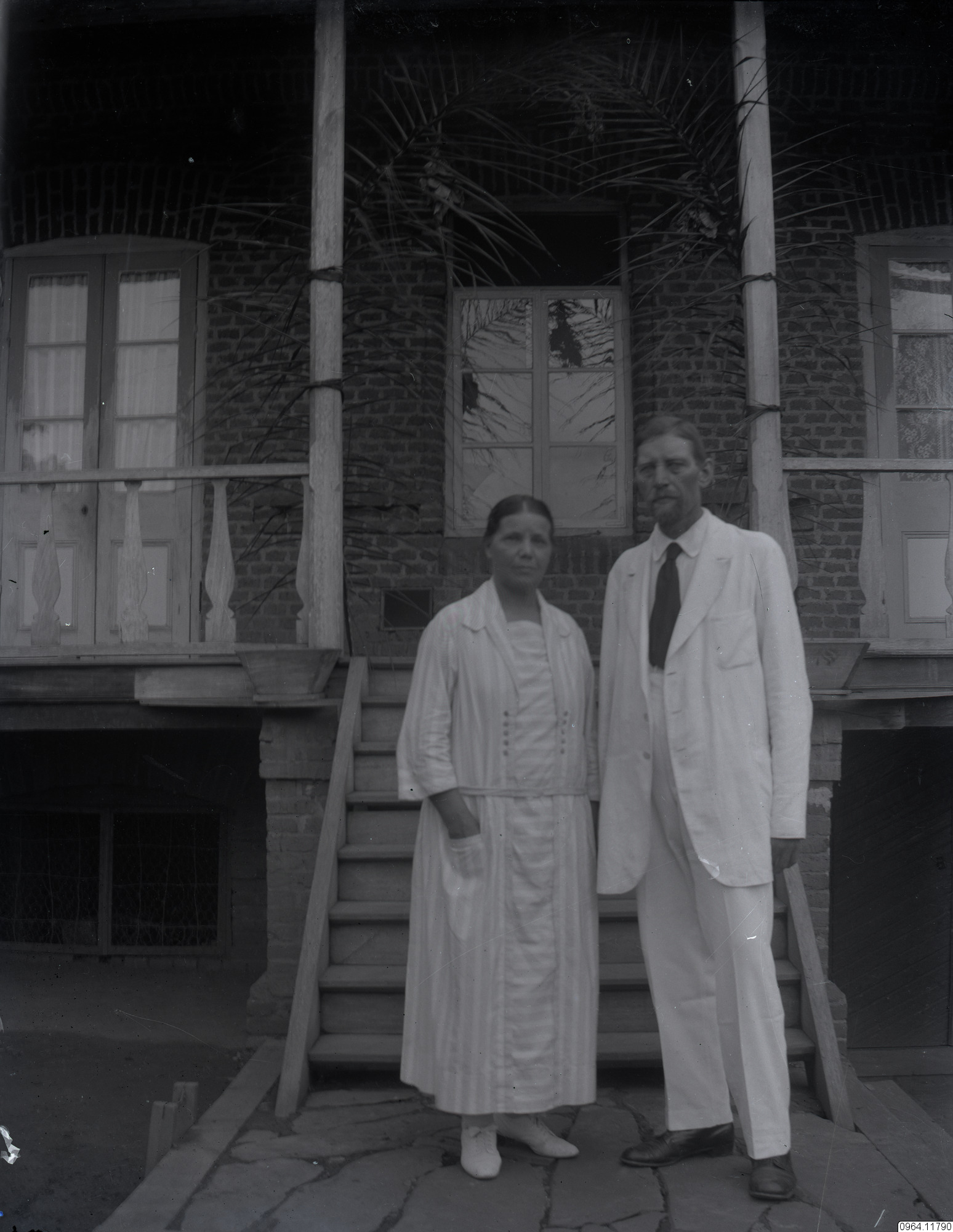 Missionärer, man och kvinna framför hus. Paret Jansson.