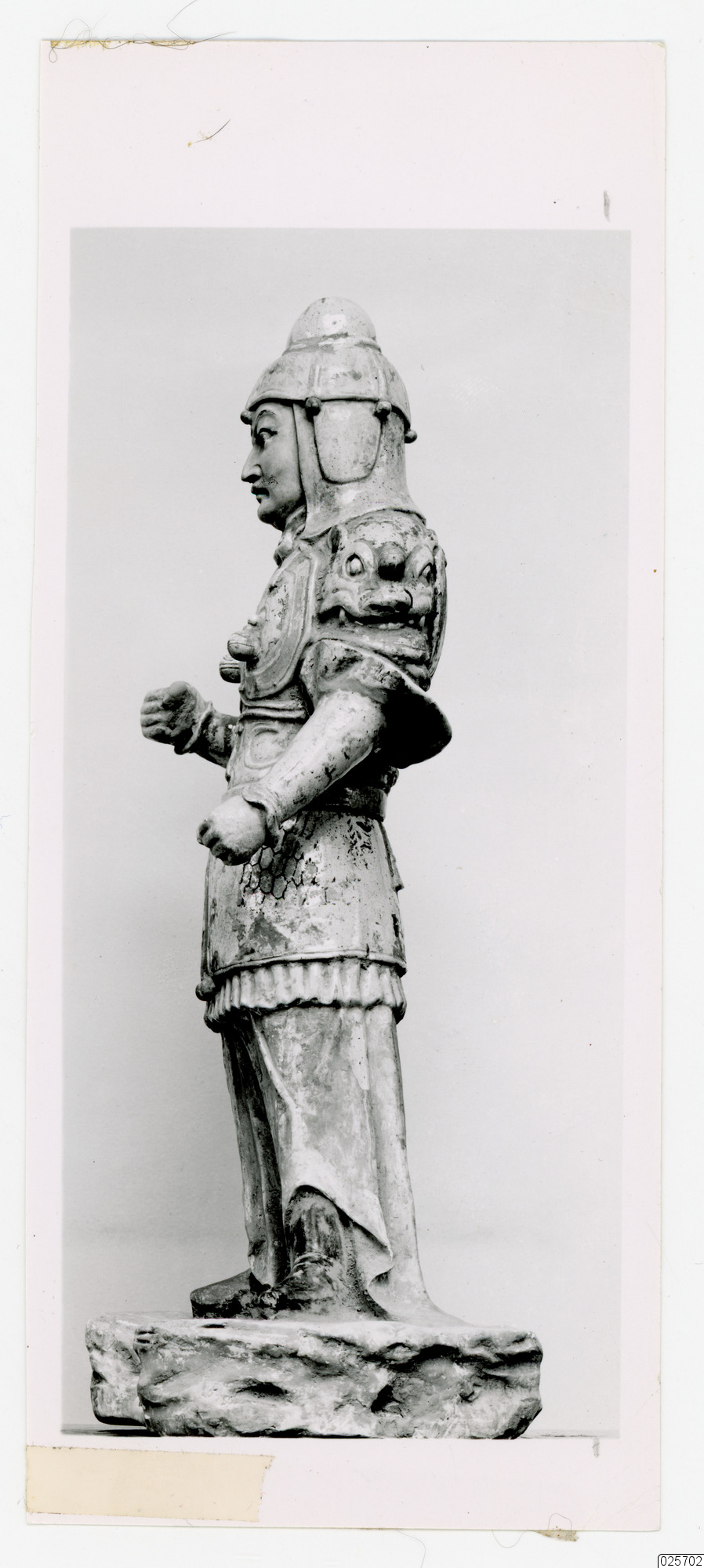 statyett föreställande kinesisk krigare i terrakotta. 500- eller 700-talet (terrakotta).