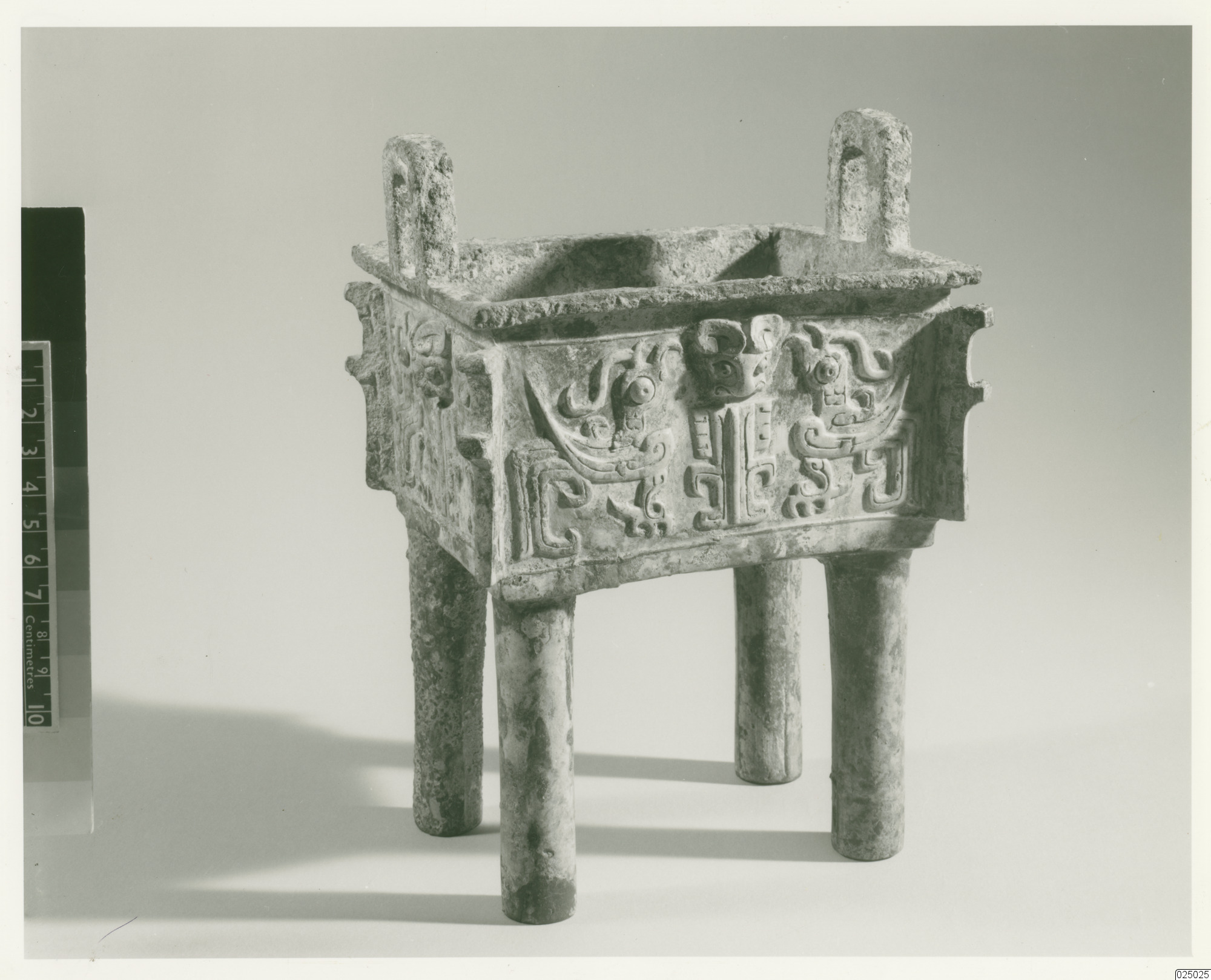En "ding". Ritualkärl i brons som användes för antingen mat eller dryck. Västra Zhou-dynastin.