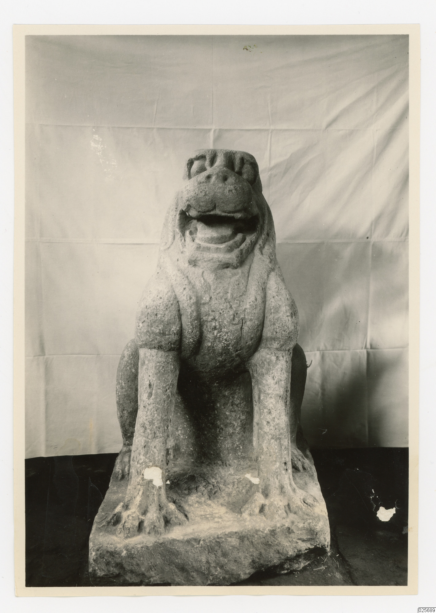 Skulpturen föreställer ett kinesiskt väktarlejon.