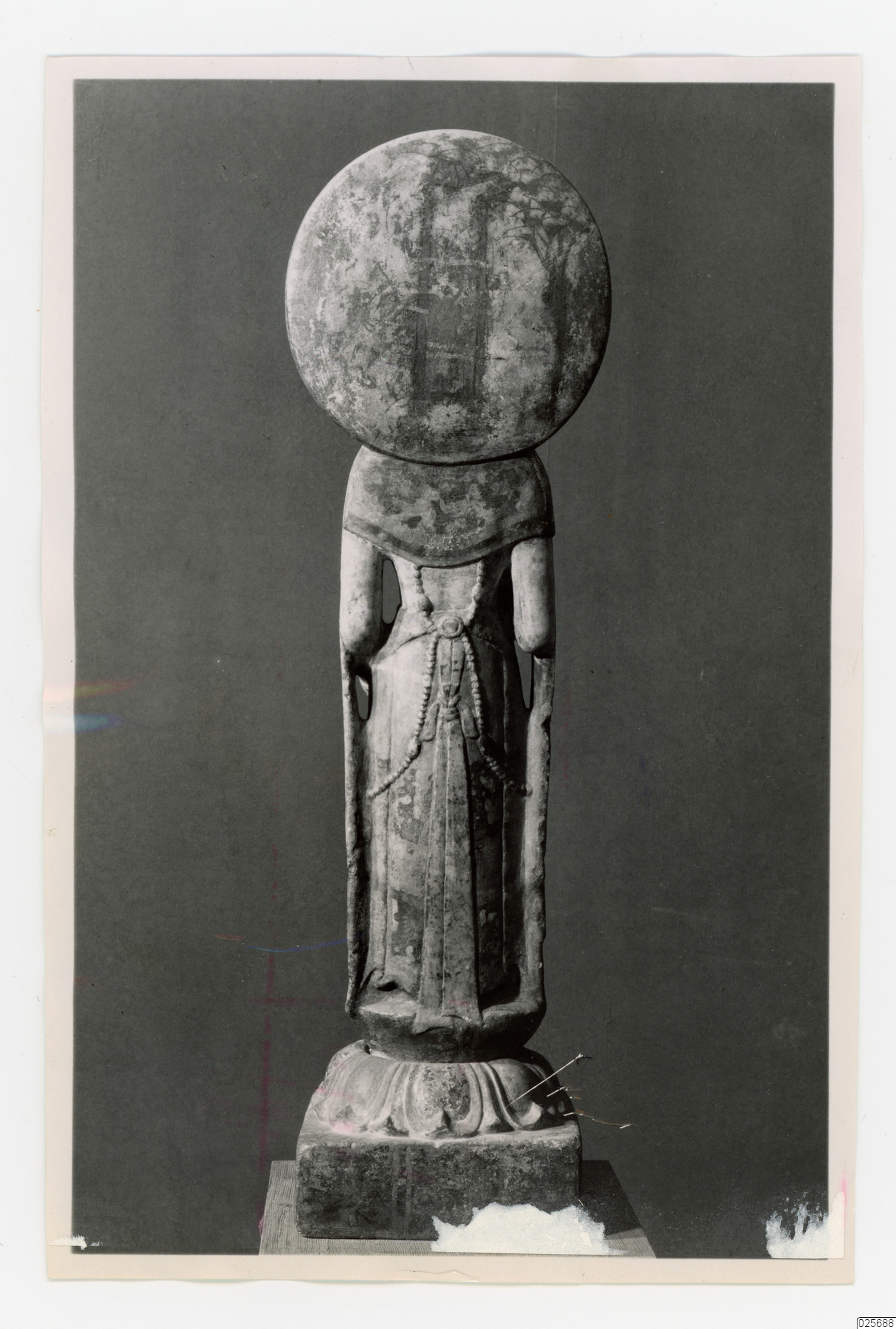 Kort taget bakifrån. Guanyin bodhisattva, Kina, Sui-dynastin, 581-618 e.Kr., marmor med rester av pigment