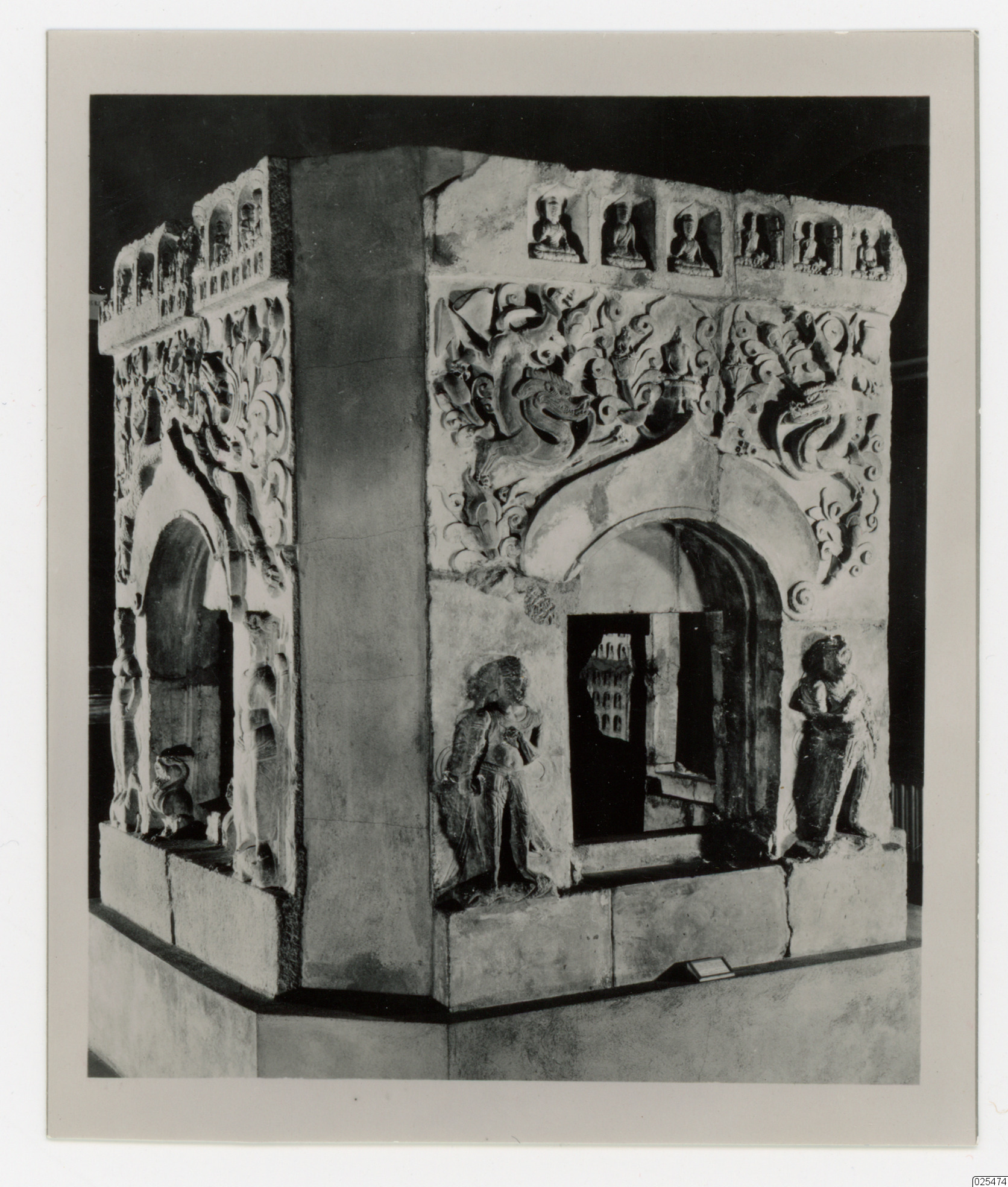 begravningspagod i kalksten med fyra Buddhor tillverkades mellan åren 560 och 575 e.Kr., under Norra Qi-dynastins regeringstid, och hittades i Shandongprovinsen