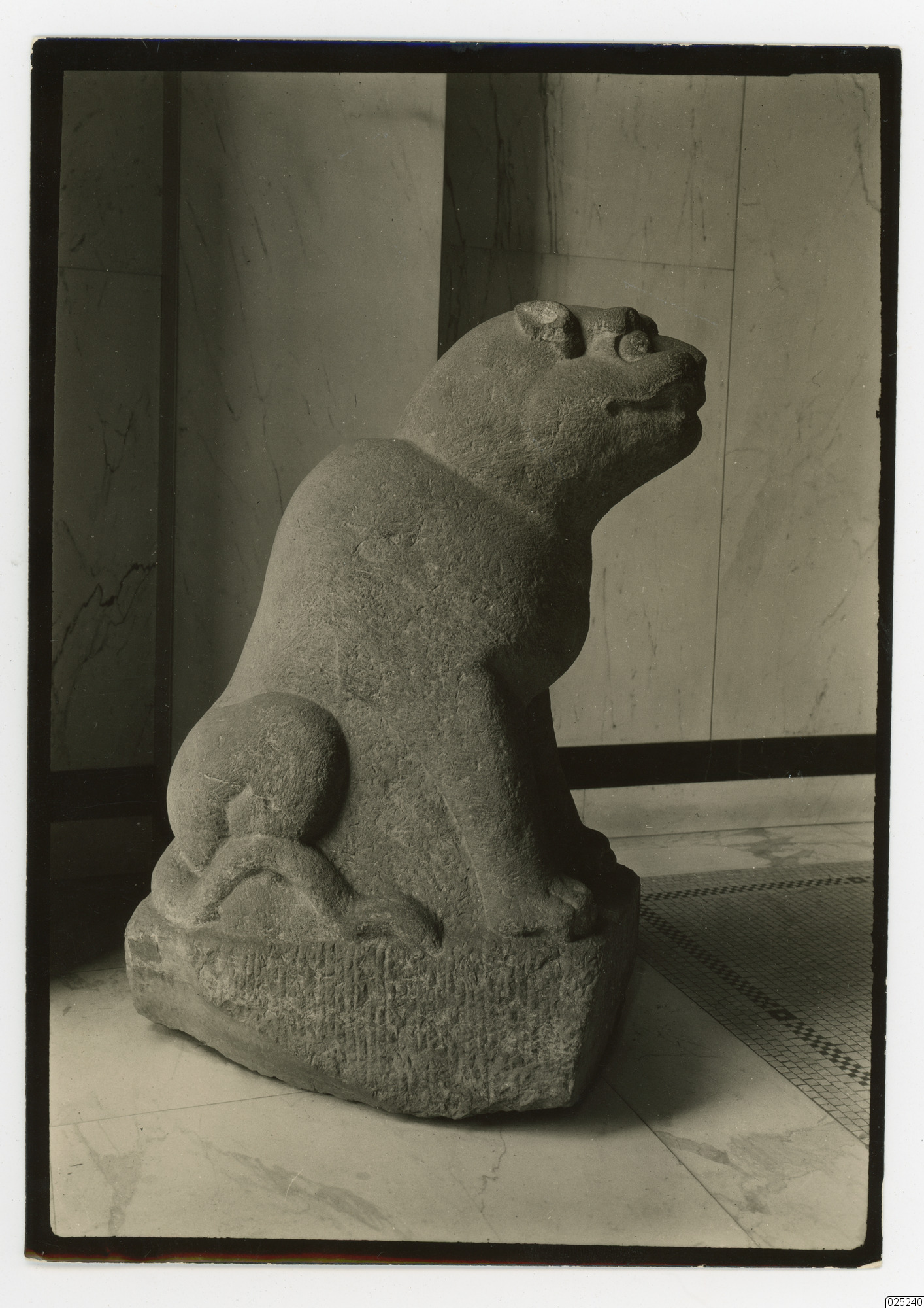 Sittande lejon staty.