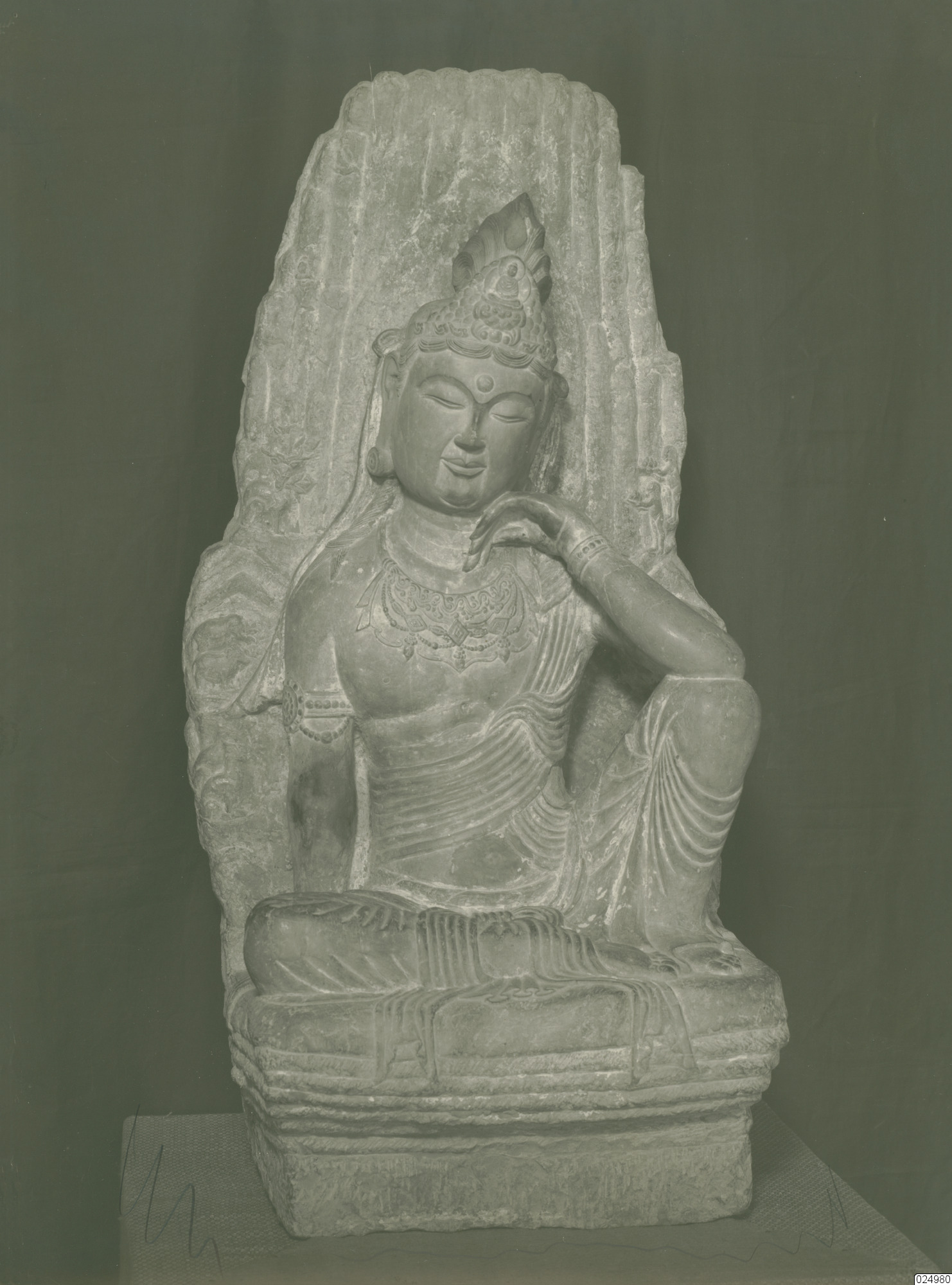 Staty i kalksten föreställande en bodhisattva. Songdynastin.