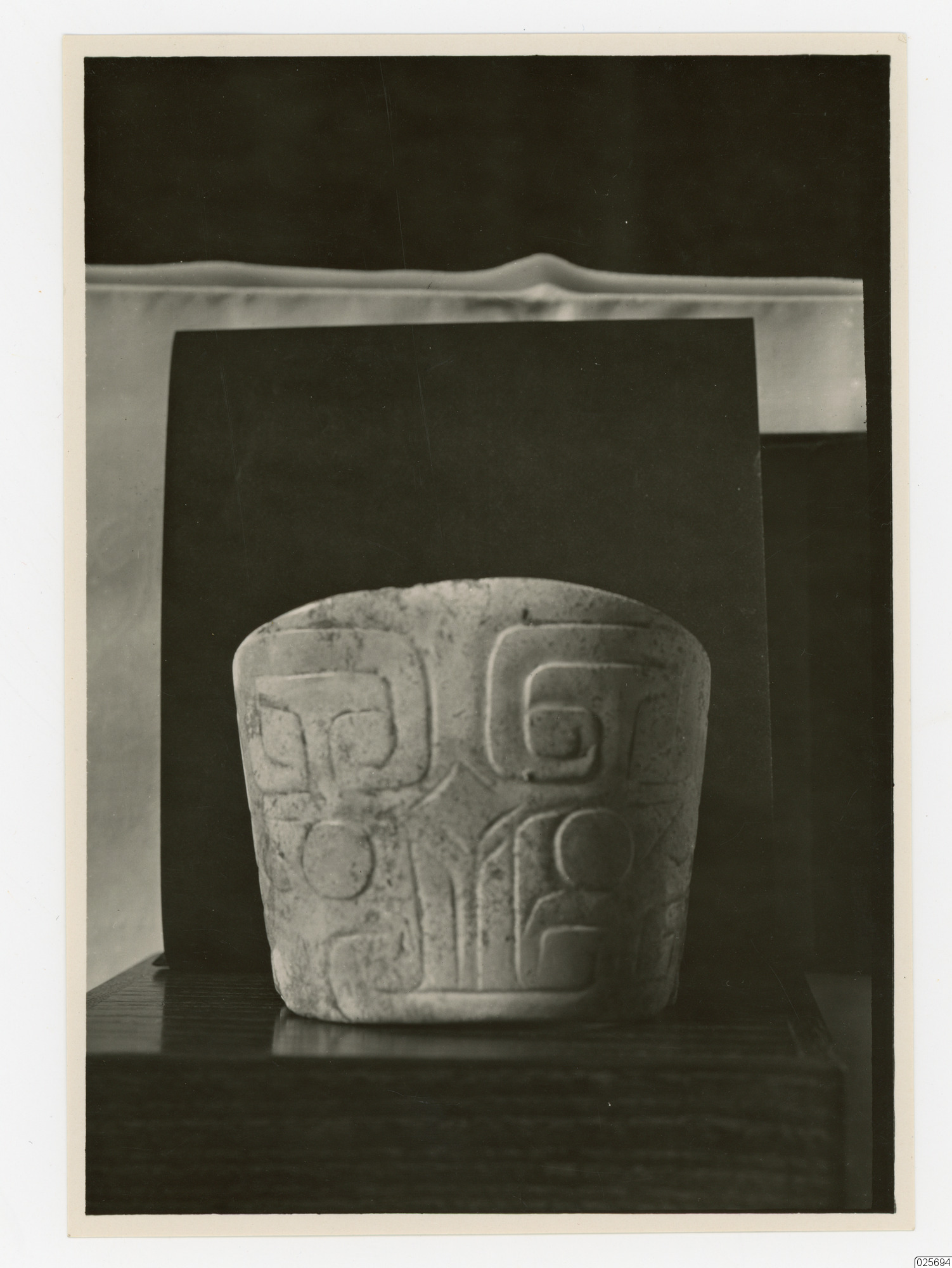 Beskrivning: Jadekrona, Taotie-mönster och ordet "minister".