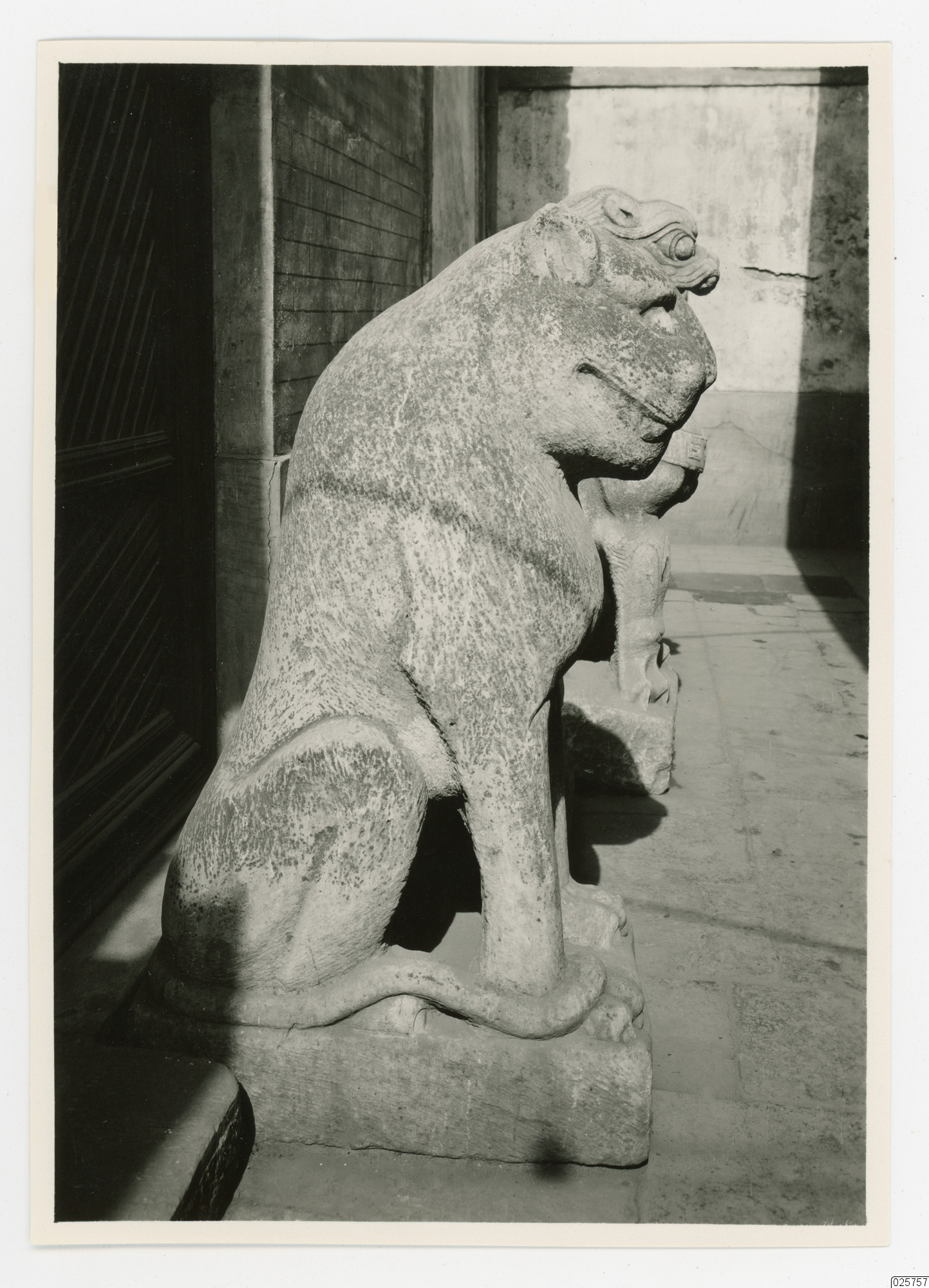 Beskrivning: Sittande lejon staty.