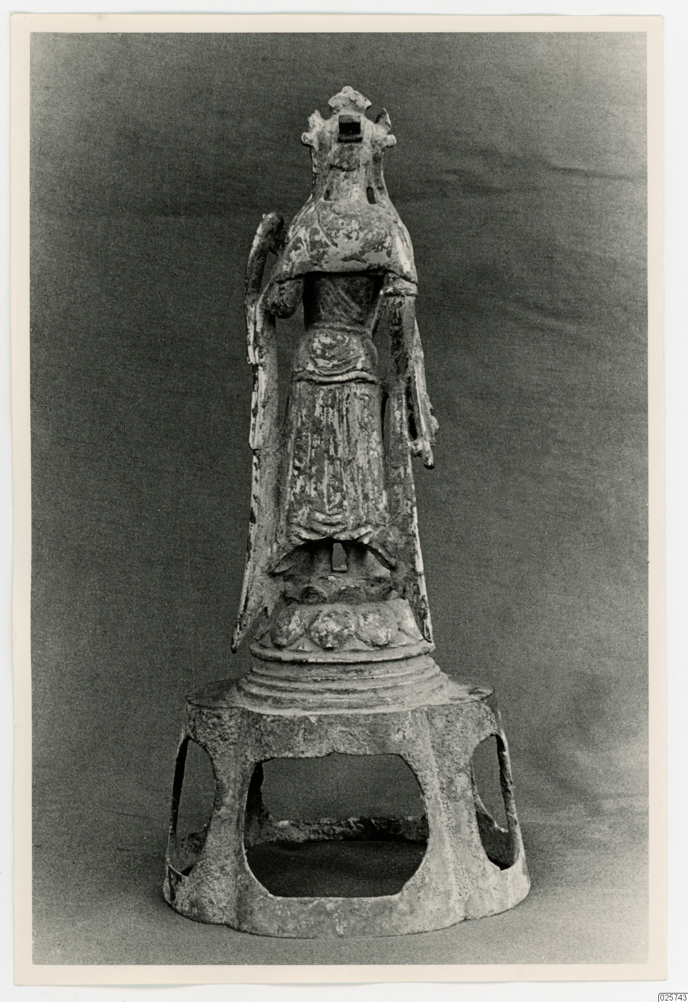 Baksidan av en stående Bodhisattva på en lotuspiedestal.
