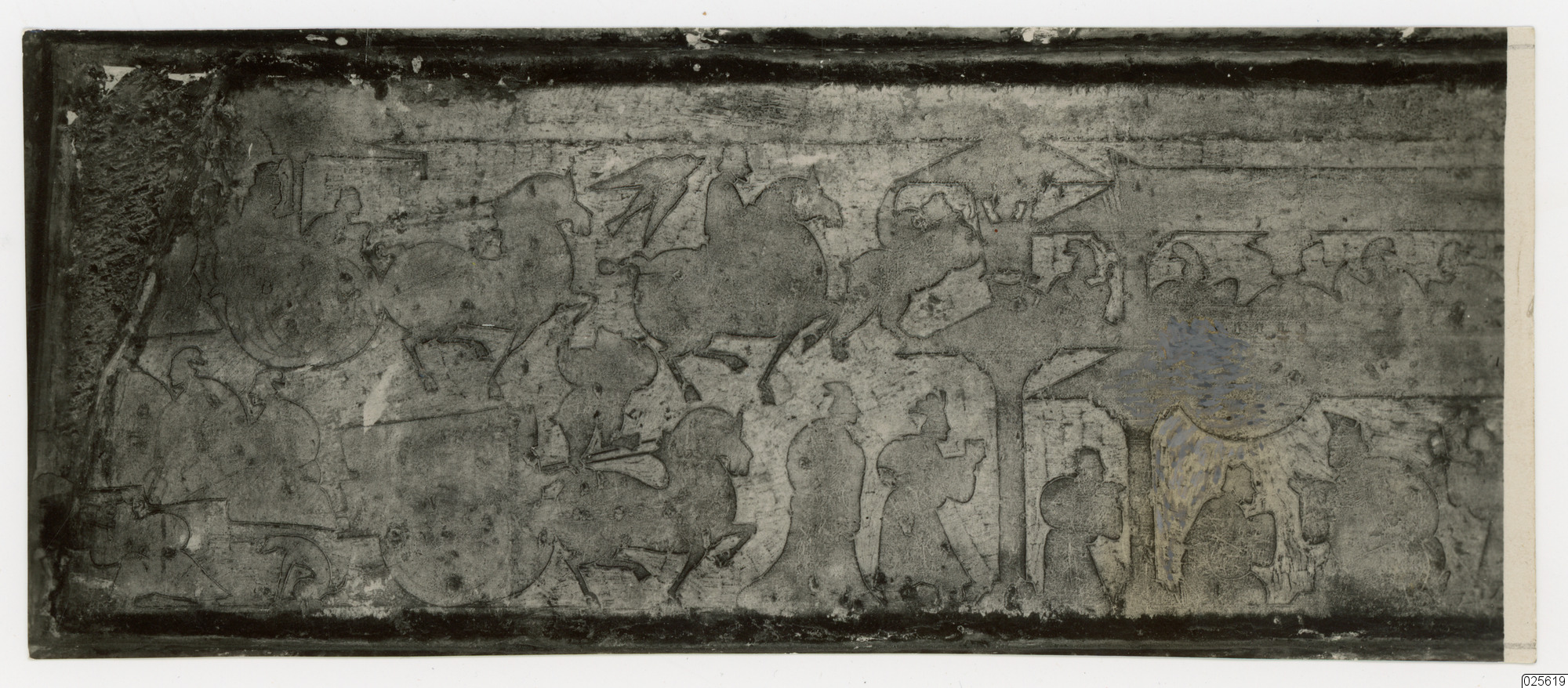 Stenhäll med en procession av figurer från Wu Liang Tzu i Shandong-provinsen, Kina