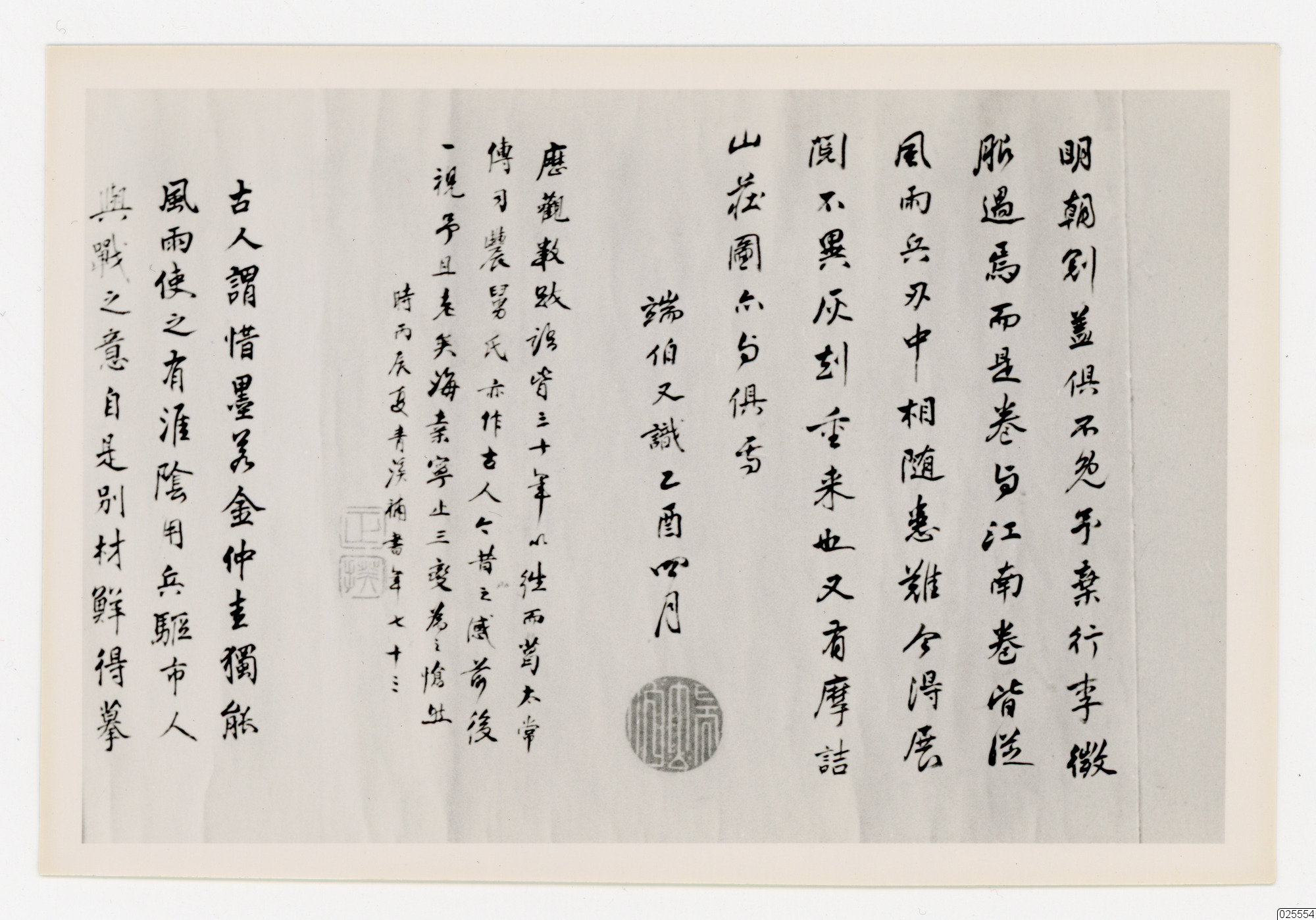 papper med kinesisk skrift. Texten på pappret är ungefärligt översatt till detta: "Imorgon är allt annorlunda. Jag överger Li Jun. Det är den som passerade hästen och skriftrullen och vårkänslorna från södra Yangtzefloden. Vinden och vapnen som följer Hui Zhinu kommer att förlita sig på det. Det är inte annorlunda. När jag kommer tillbaka igen finns även Mo Jie där. De sex terrasserna i bergsträdgården är alla tungor. Rui Bo känner också Yiyou. Ying Fans lära besegrades. Efter trettio år, "Offer och Xiao Liu Zhang". Pei Huangshis arv gav också en forntida känsla före och efter. En sa att spindelplantan gick bort från himmelhavet och Su Ning förändrades tre gånger till "Jia Site". Vid den tiden hanterade Qingxia Qingyang bok 173. De gamla sa att bläcket var dyrbart och svart, och Jin Zhonggui var den enda som kunde göra det. Vinden och regnet gjorde att Huaiyin Mao-soldater och marknadsfolk hade det. Avsikten att slåss är naturligtvis ett annat material och sällsynt att kopiera."
