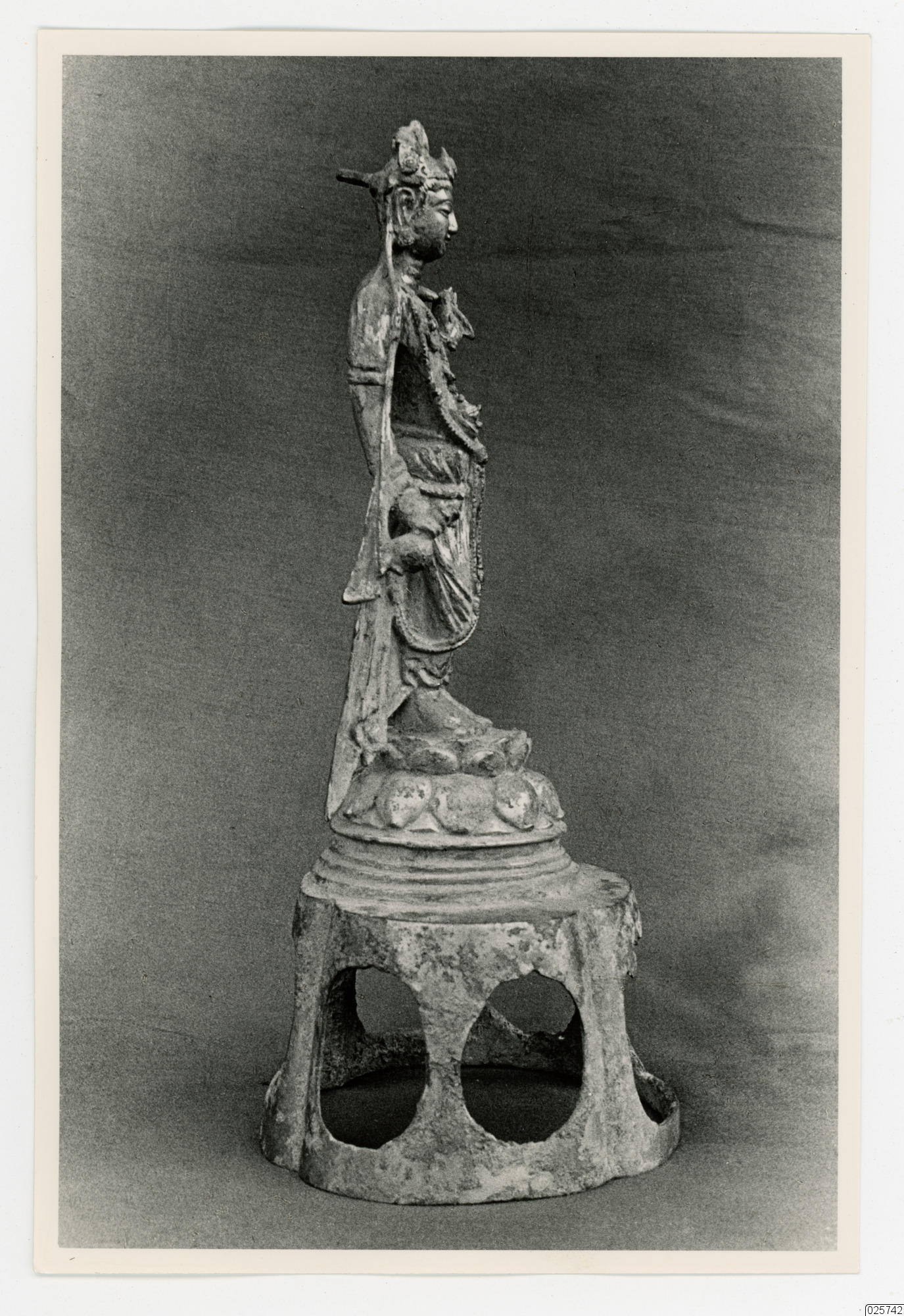 Sidan av en stående Bodhisattva på en lotuspiedestal.