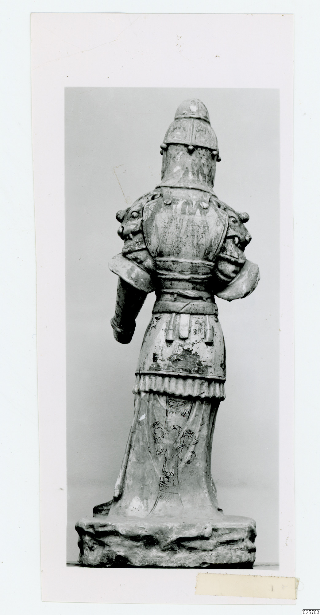 statyett föreställande ryggen av kinesisk krigare i terrakotta. 500- eller 700-talet (terrakotta).