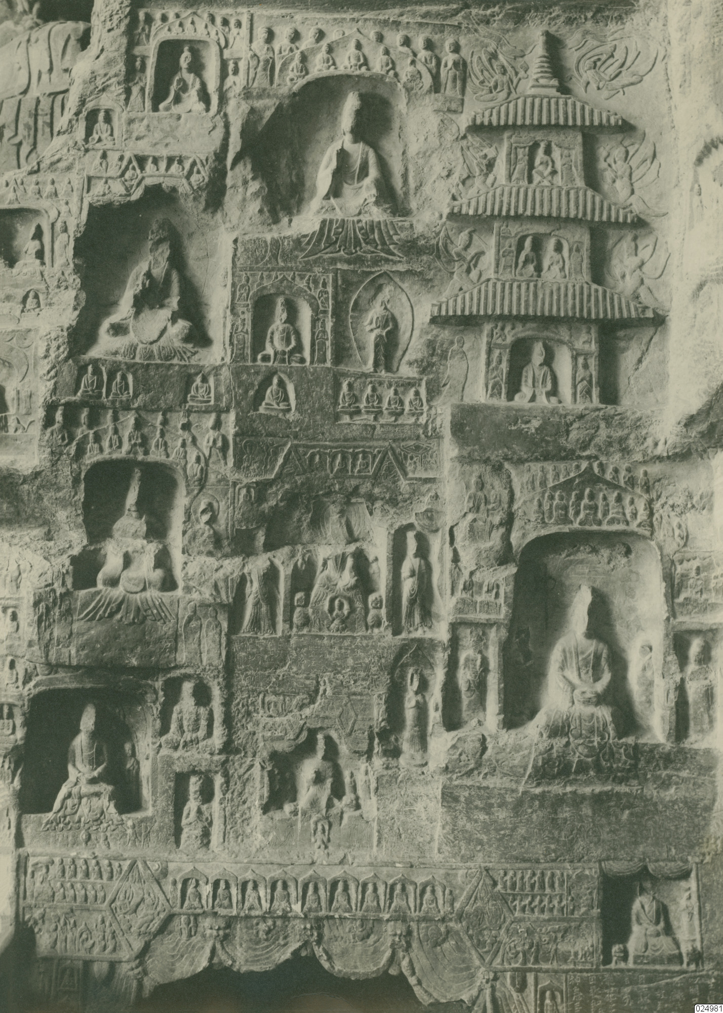 Väggparti från södra delen av Guyanggrottan, en del av Longmengrottorna. Norra Wei-dynastin.