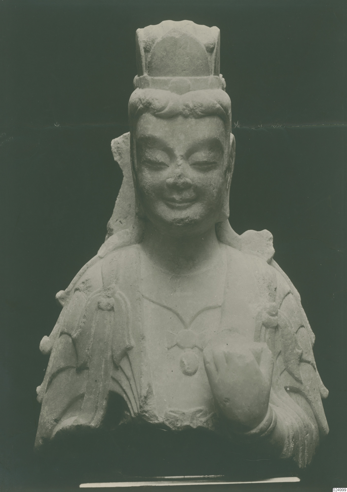Staty/byst i marmor av en bodhisattva. Från Dingzhou, Hebeiprovinsen. Norra Wei-dynastin.