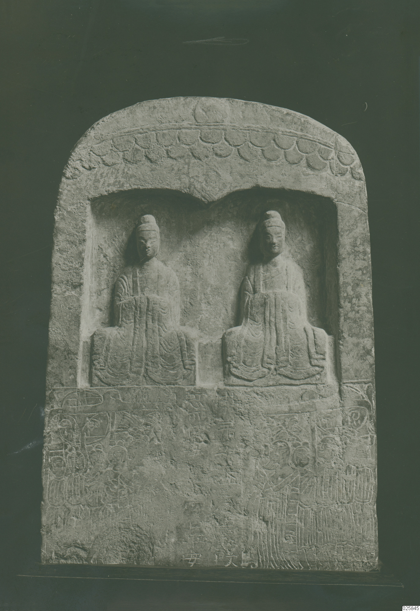 "Votive Stele" skulptur i sten. Daterat ca 525 Weidynastin (386-535)