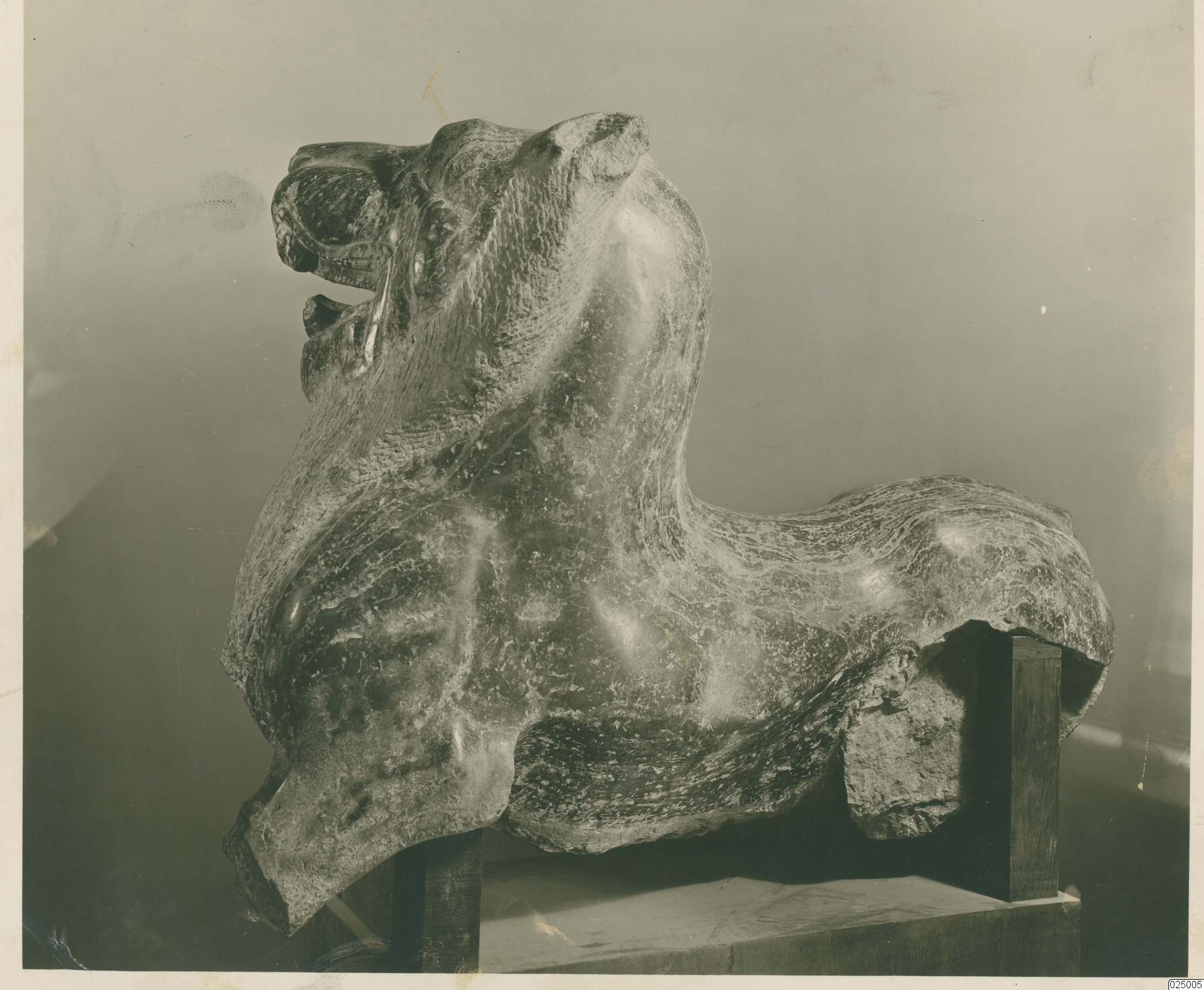 Väktarlejon i sten, svart granit. Handynastin.