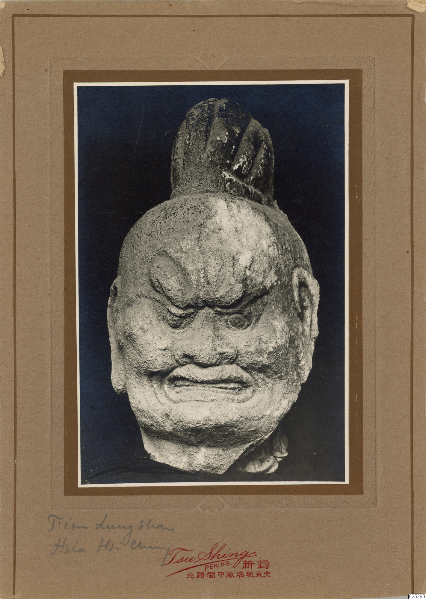 skulptur på ett ansikte. text på baksida av bild, 1929. Ming dynasty Jiajing (mark and period Production date 1522-1566 Production place Made in: Jingdezhen.