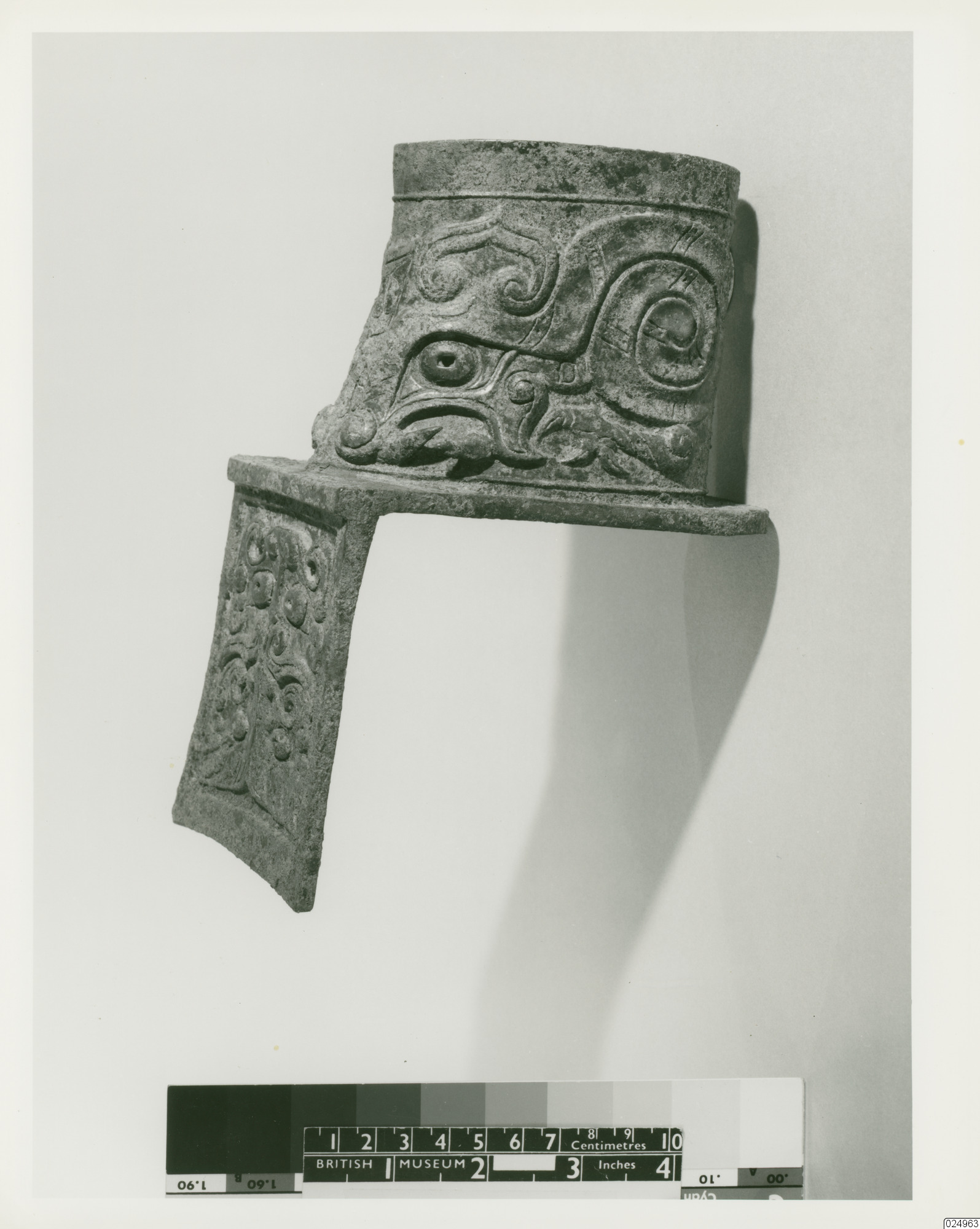 Ett beslag/skaft för sedanstol, tillverkad i brons. Västa Zhou-dynastin.