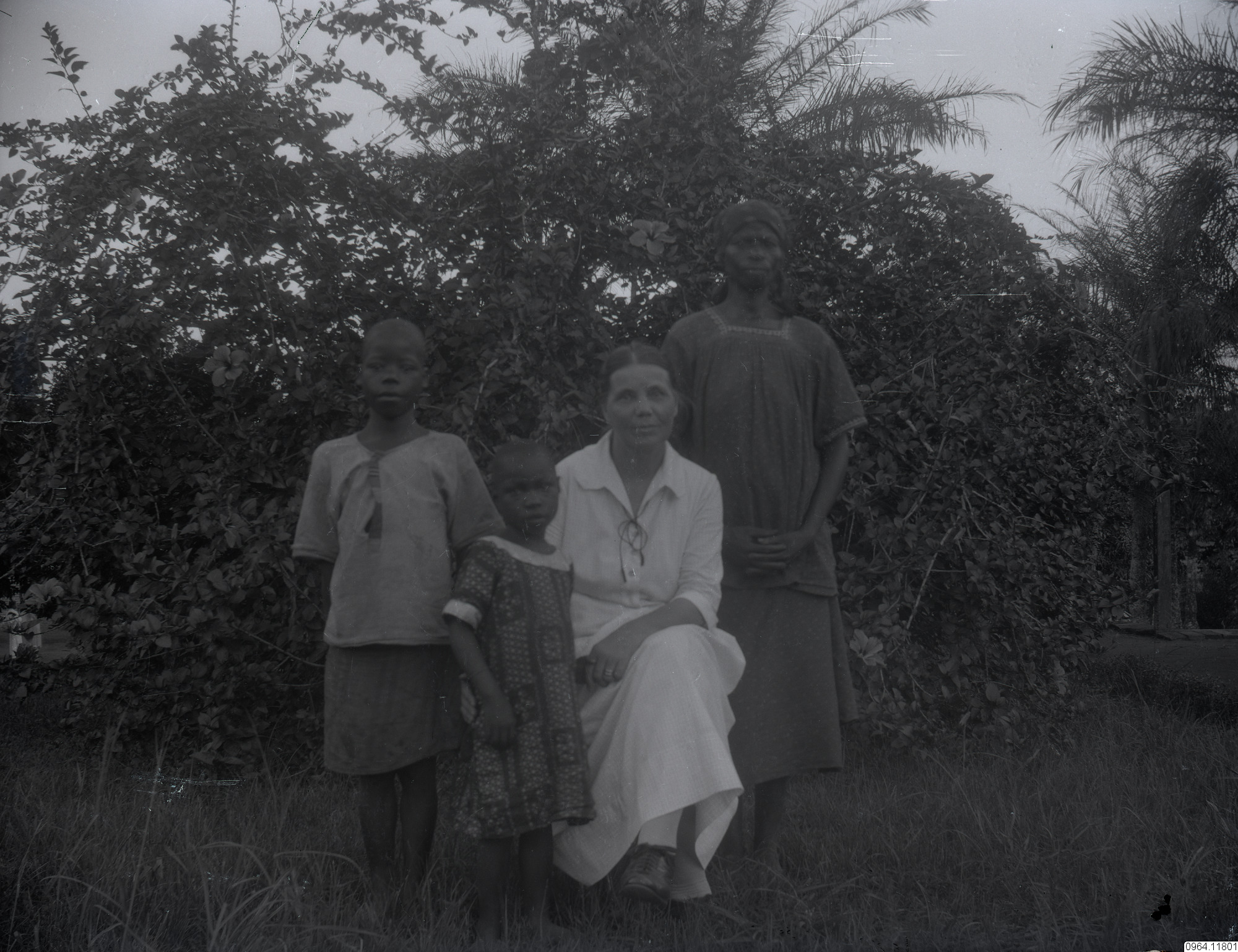 Gruppbild, fyra personer, en kvinnlig missionär.