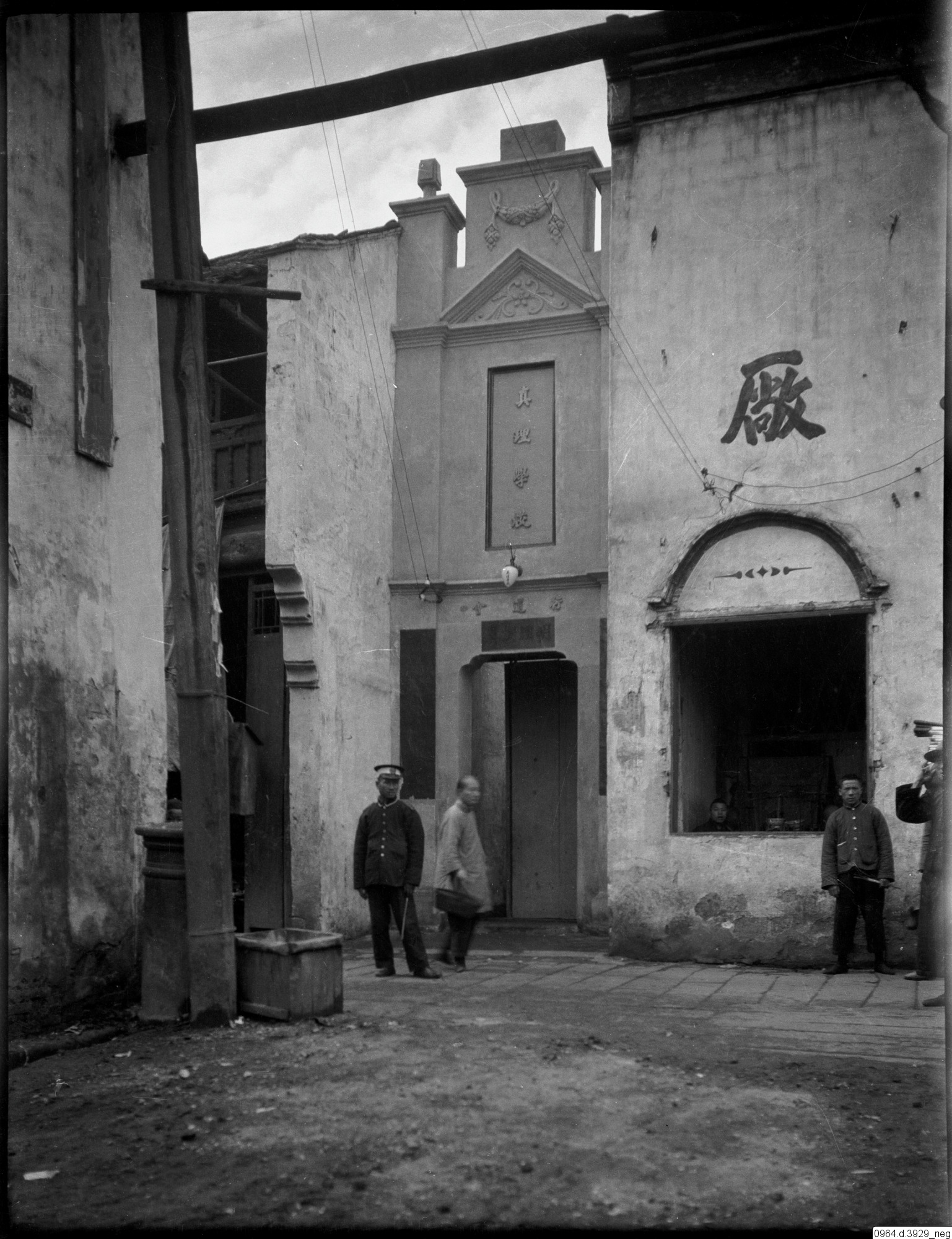 uniformer, gata, elledningar, byggnader, fönster, skyltar, fotografi, photograph