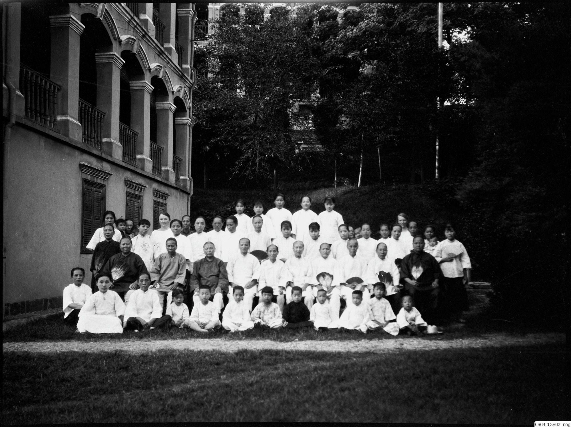 barn, missionärer, byggnad, gruppbild, kvinnor, pelare, fotografi, photograph