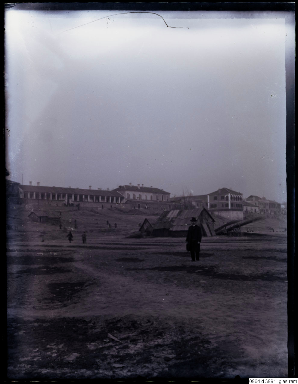 hatt, byggnader, missionär, mur, man, missionsstation, fotografi, photograph