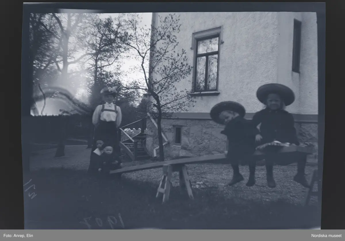 Barnen gungar gungbräda utanför familjen Morthensens villa Solveden, Djursholm.