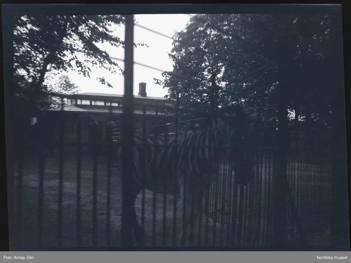 En zebra bakom galler på ett zoo.