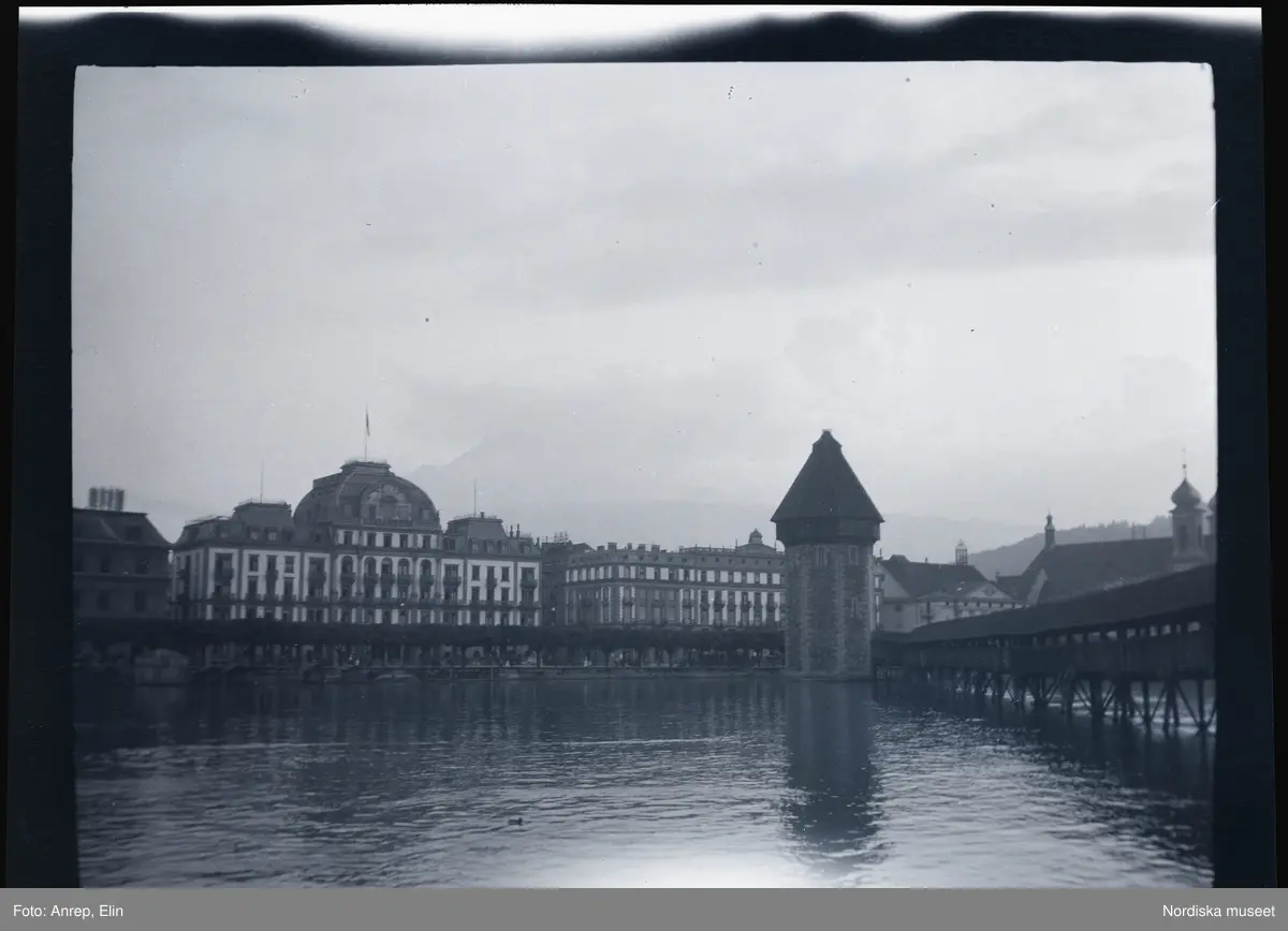 Fotografier tagna under en resa Elin och Leonarth gör 1907 till Schweiz, med tåg via Danmark och Tyskland. Platser som besöks på resan är bl.a. Lauterbrunnen, Luzern och Bern.