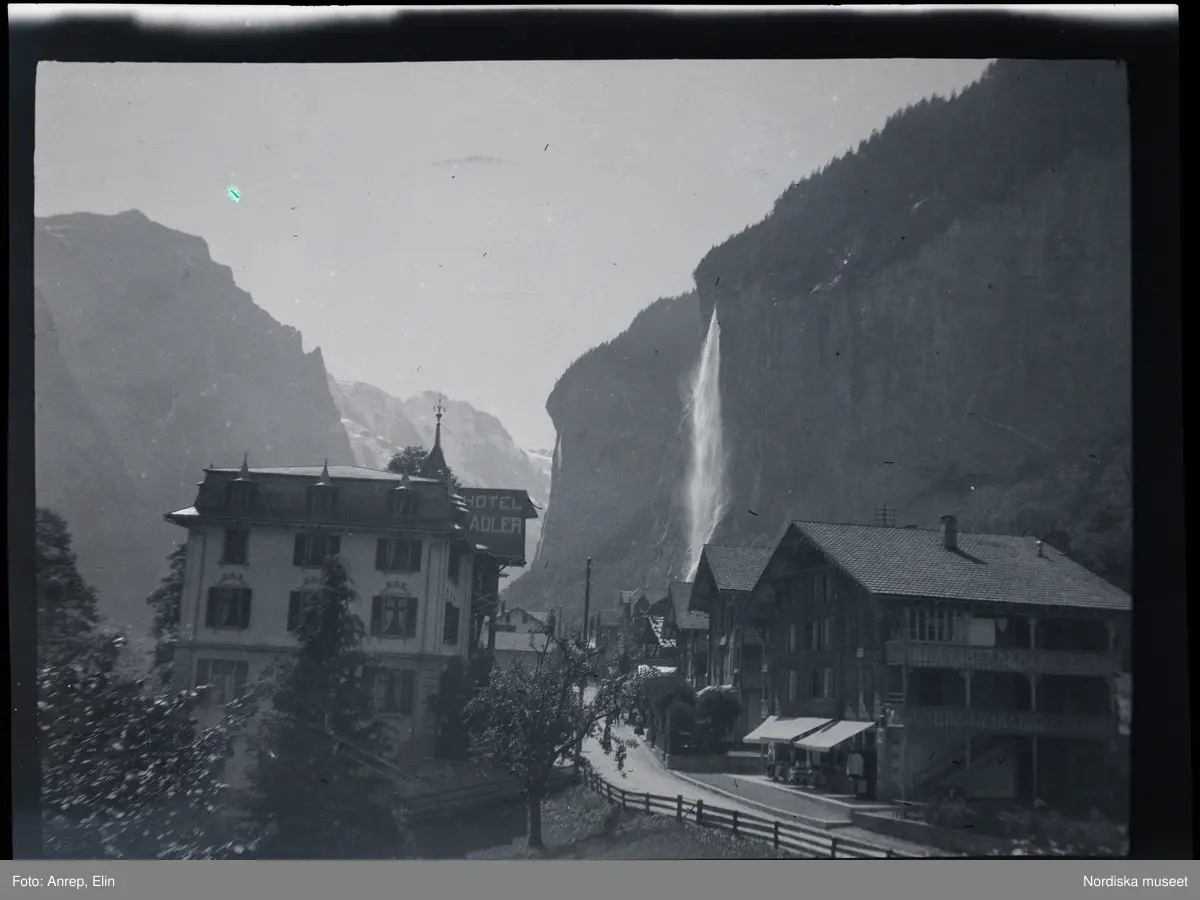 Fotografier tagna under en resa Elin och Leonarth gör 1907 till Schweiz, med tåg via Danmark och Tyskland. Platser som besöks på resan är bl.a. Lauterbrunnen, Luzern och Bern.