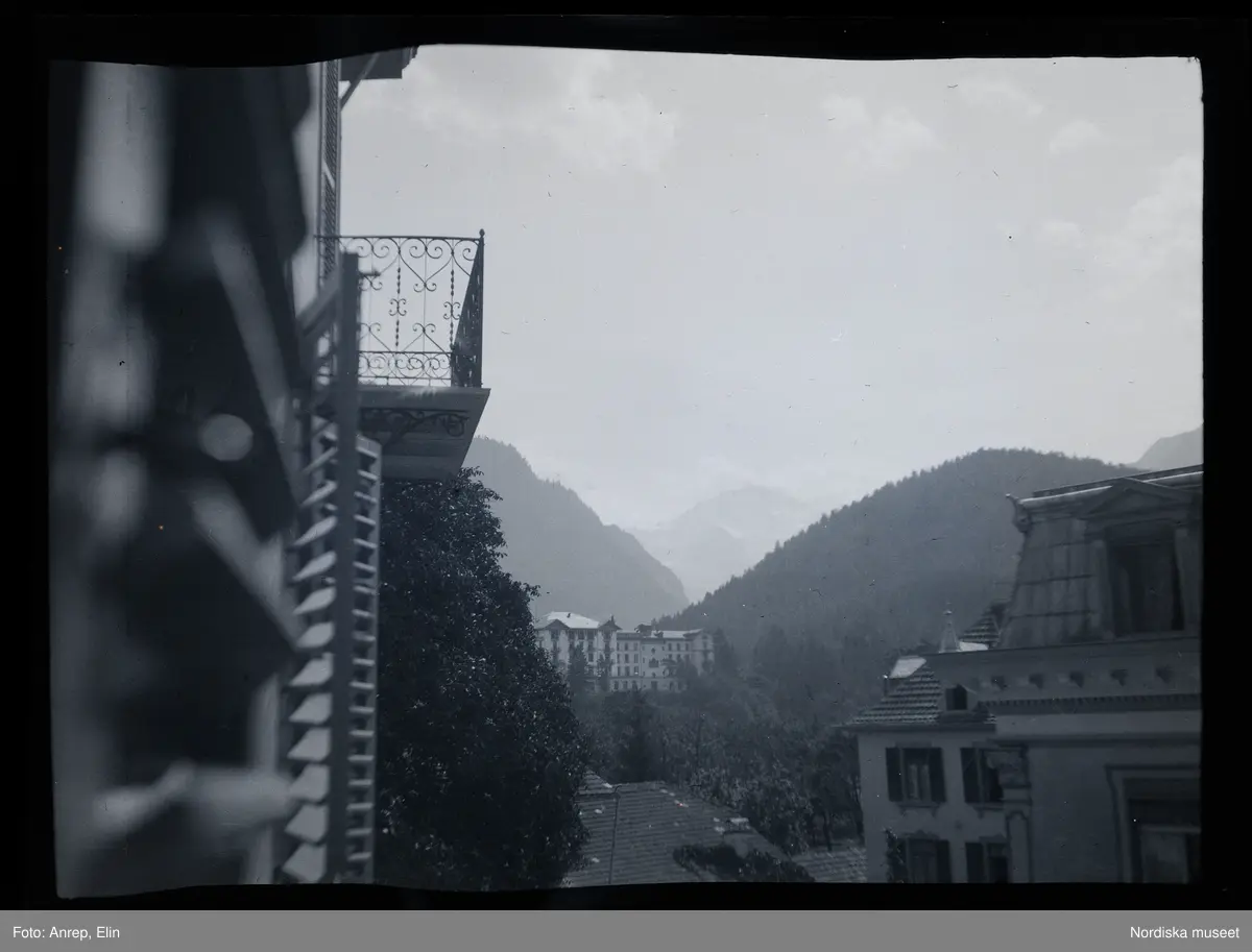 Fotografier tagna under en resa Elin och Leonarth gör 1907 till Schweiz, med tåg via Danmark och Tyskland. Platser som besöks på resan är bl.a. Lauterbrunnen, Luzern och Bern.