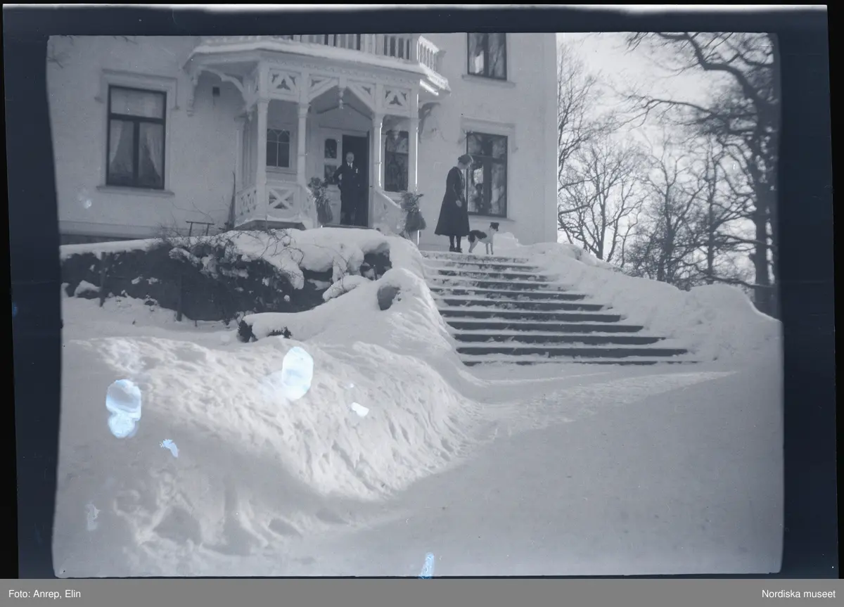 Utanför familjen Morthensens villa Solveden, Djursholm. Snö.