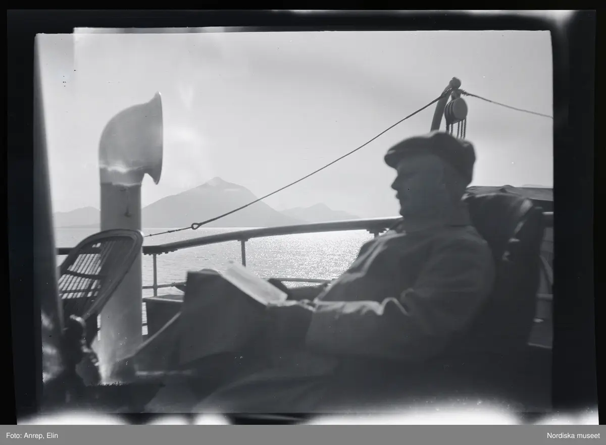 Leonarth Morthensen sitter och läser på ett fartygsdäck.