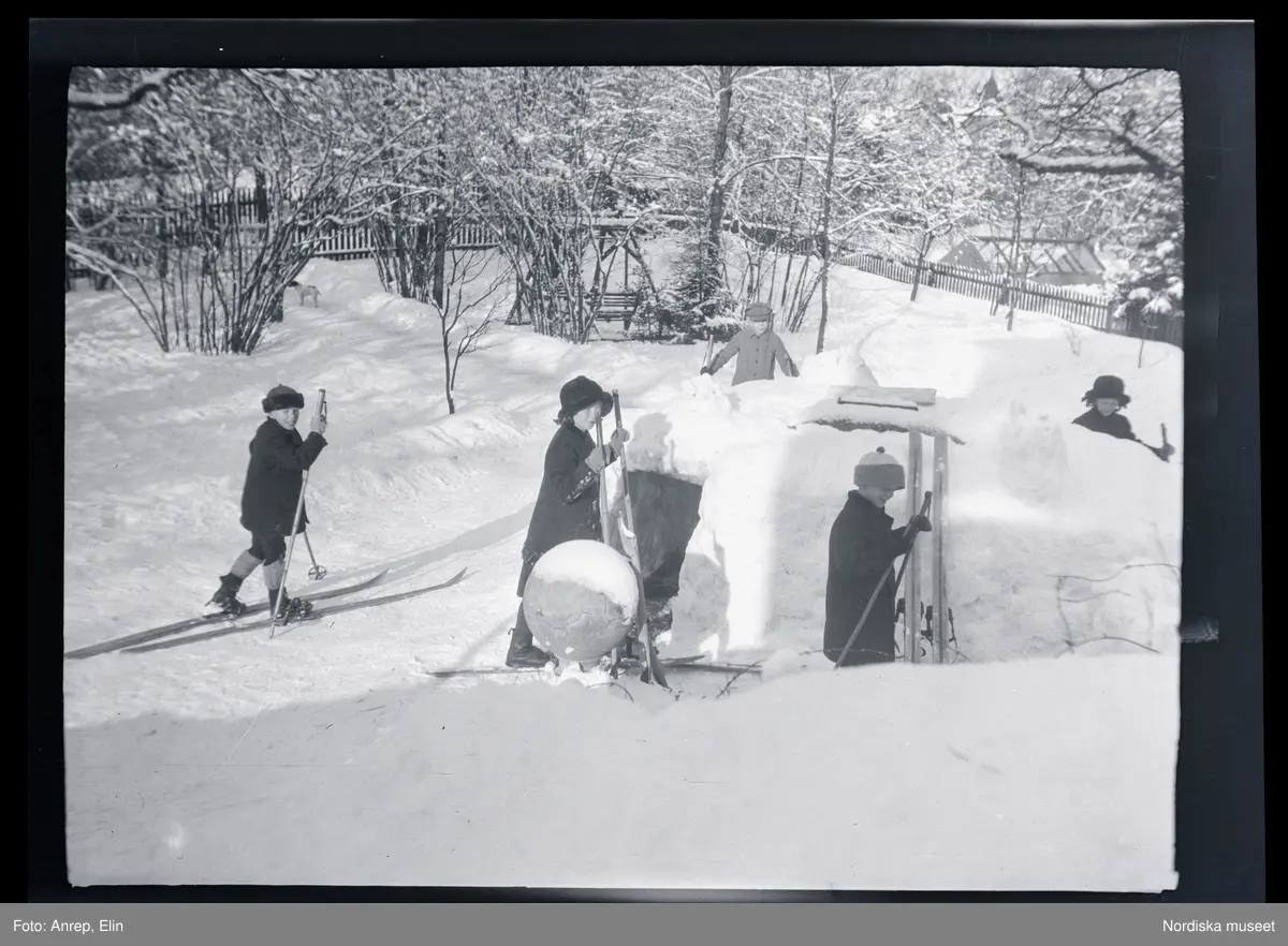 Barn på skidor utanför Villa Solveden, Djursholm.