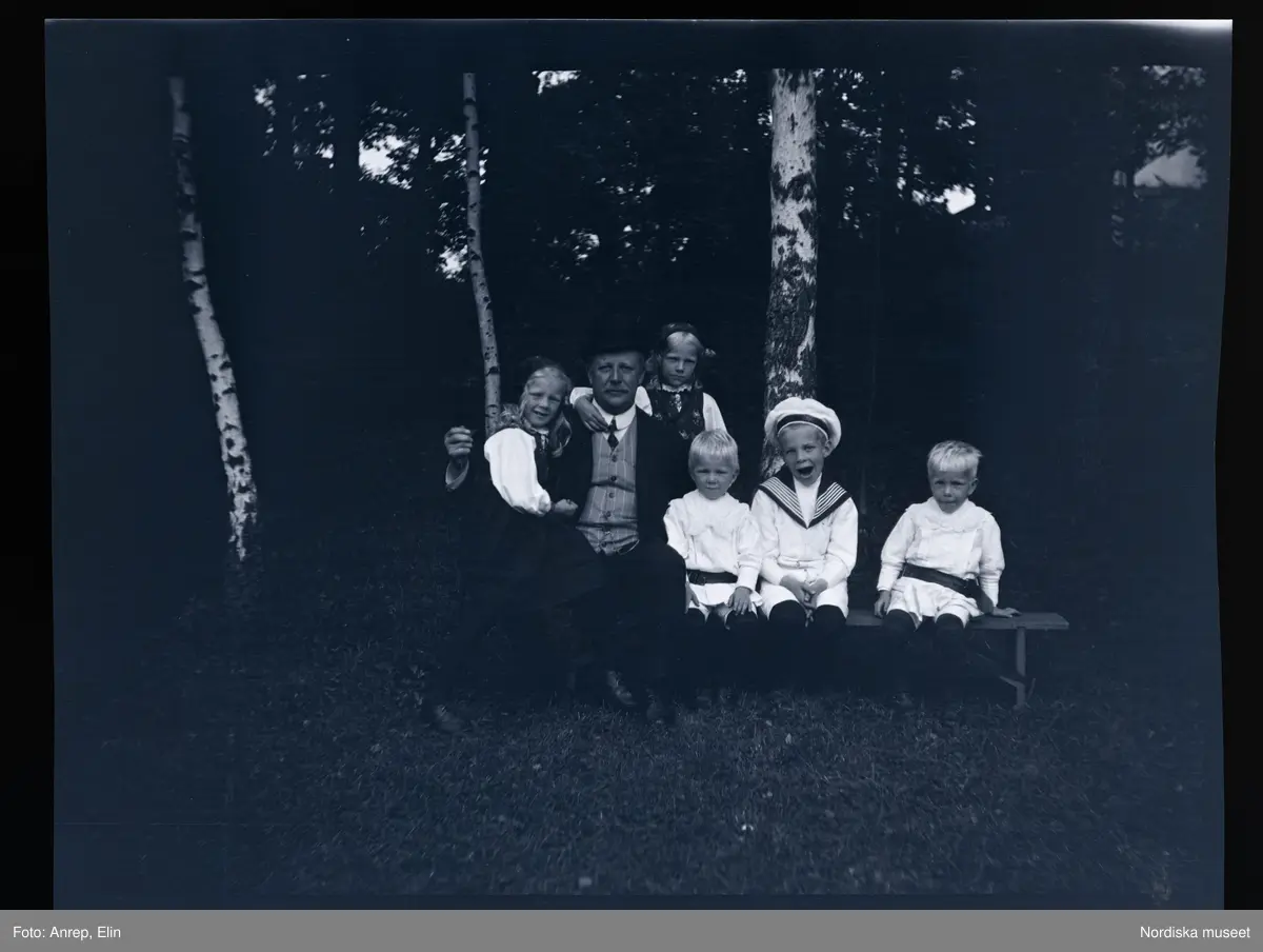 Pappa Leonarth och de fem barnen Elsa, Gudrun, Birger, Sven och Gunnar Morthensen.