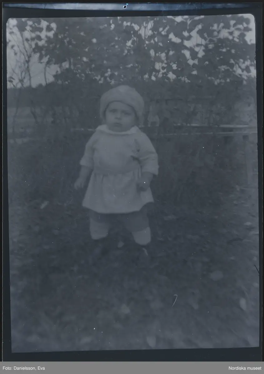 Porträtt av ett litet barn, utomhus.