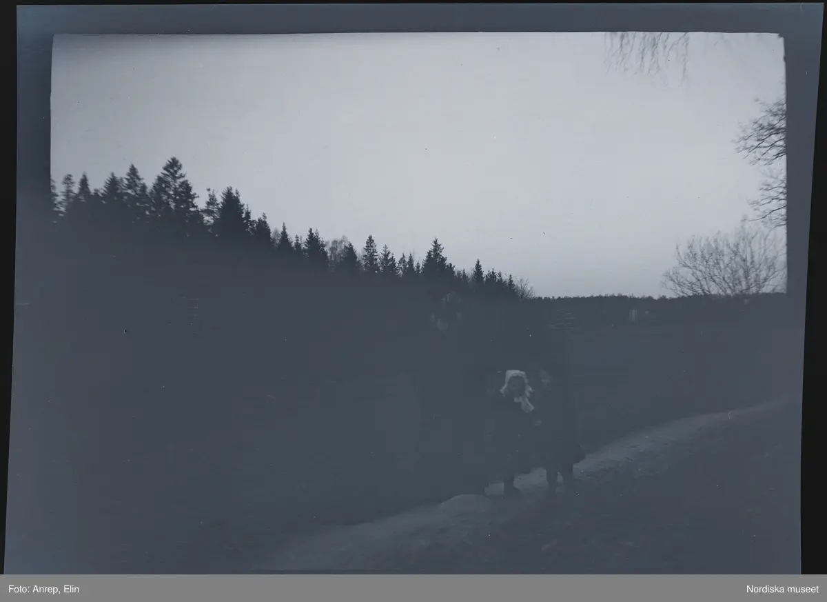 Elin Morthensen (född Anrep) på promenad med döttrarna Elsa och Gudrun.
