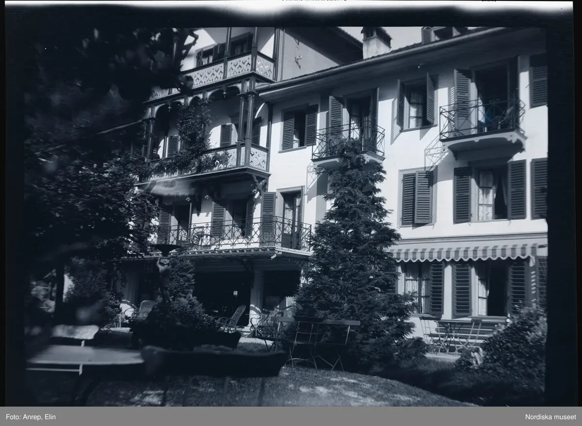 Fotografier tagna under en resa Elin och Leonarth gör 1907 till Schweiz, med tåg via Danmark och Tyskland. Platser som besöks på resan är bl.a. Lauterbrunnen, Luzern och Bern.
