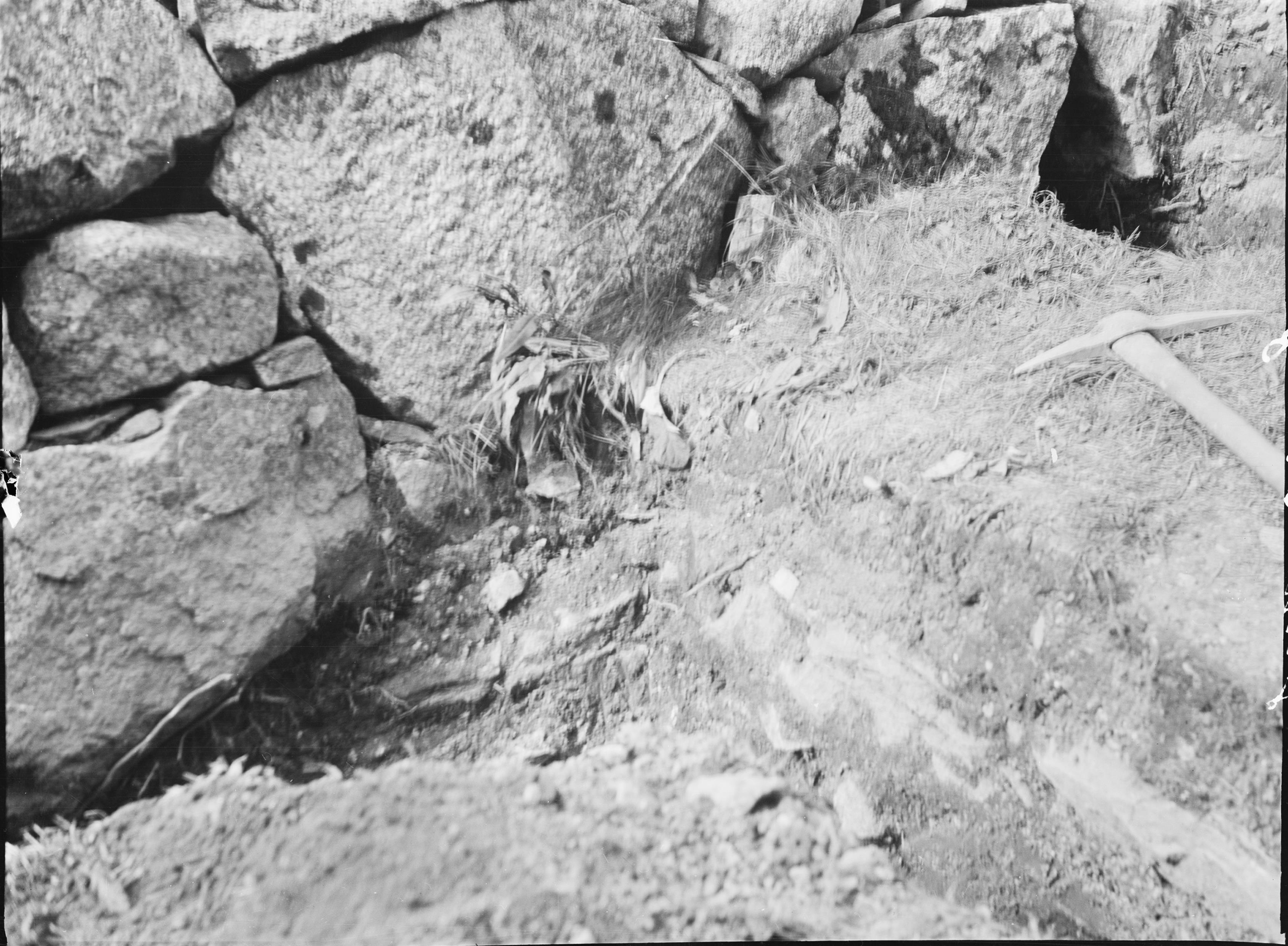 Grävning vid nordvästra inre hörnet, mot sydöst.
