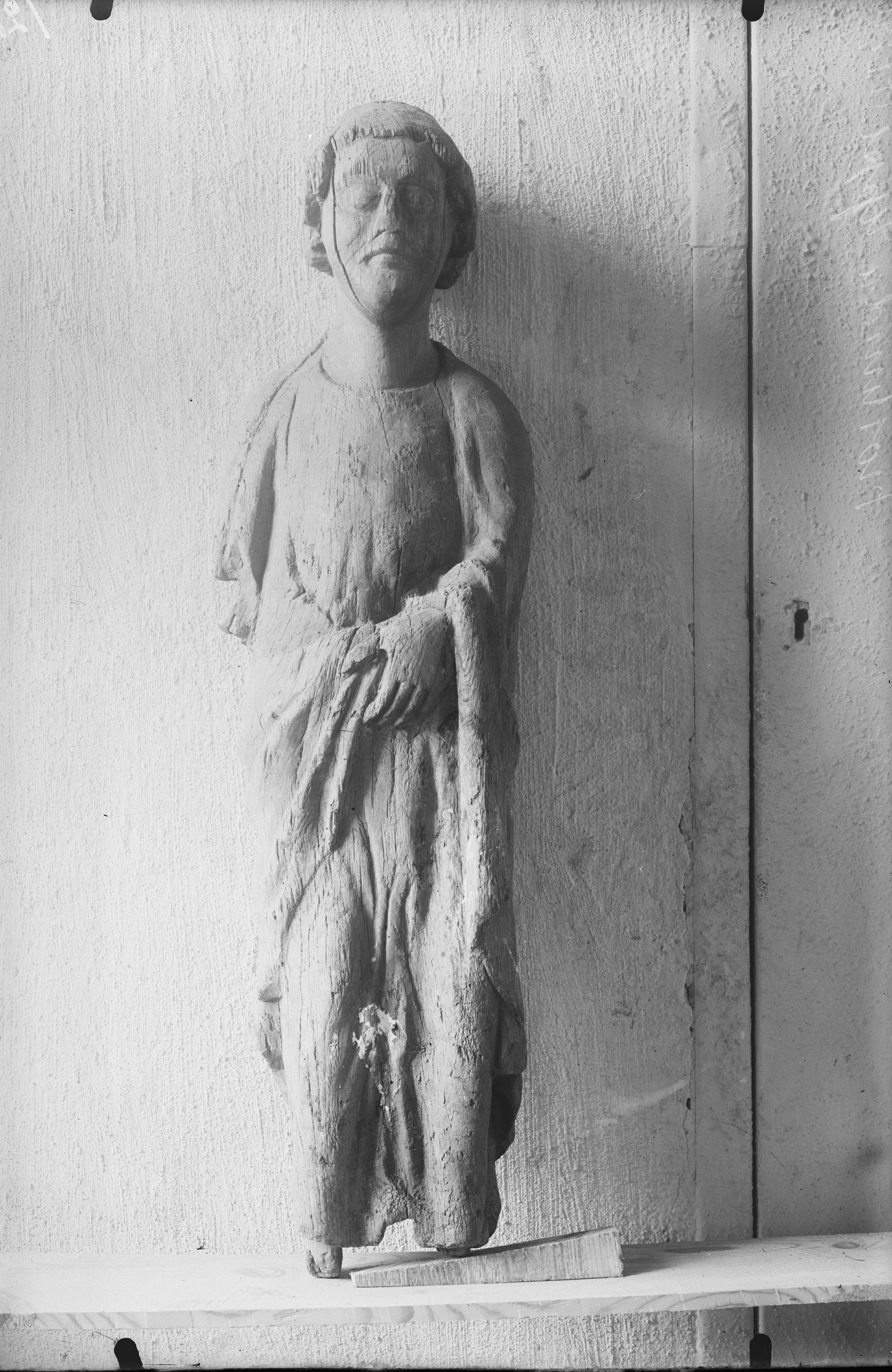 Skulptur, trä, manligt helgon, 1300-talets andra hälft.