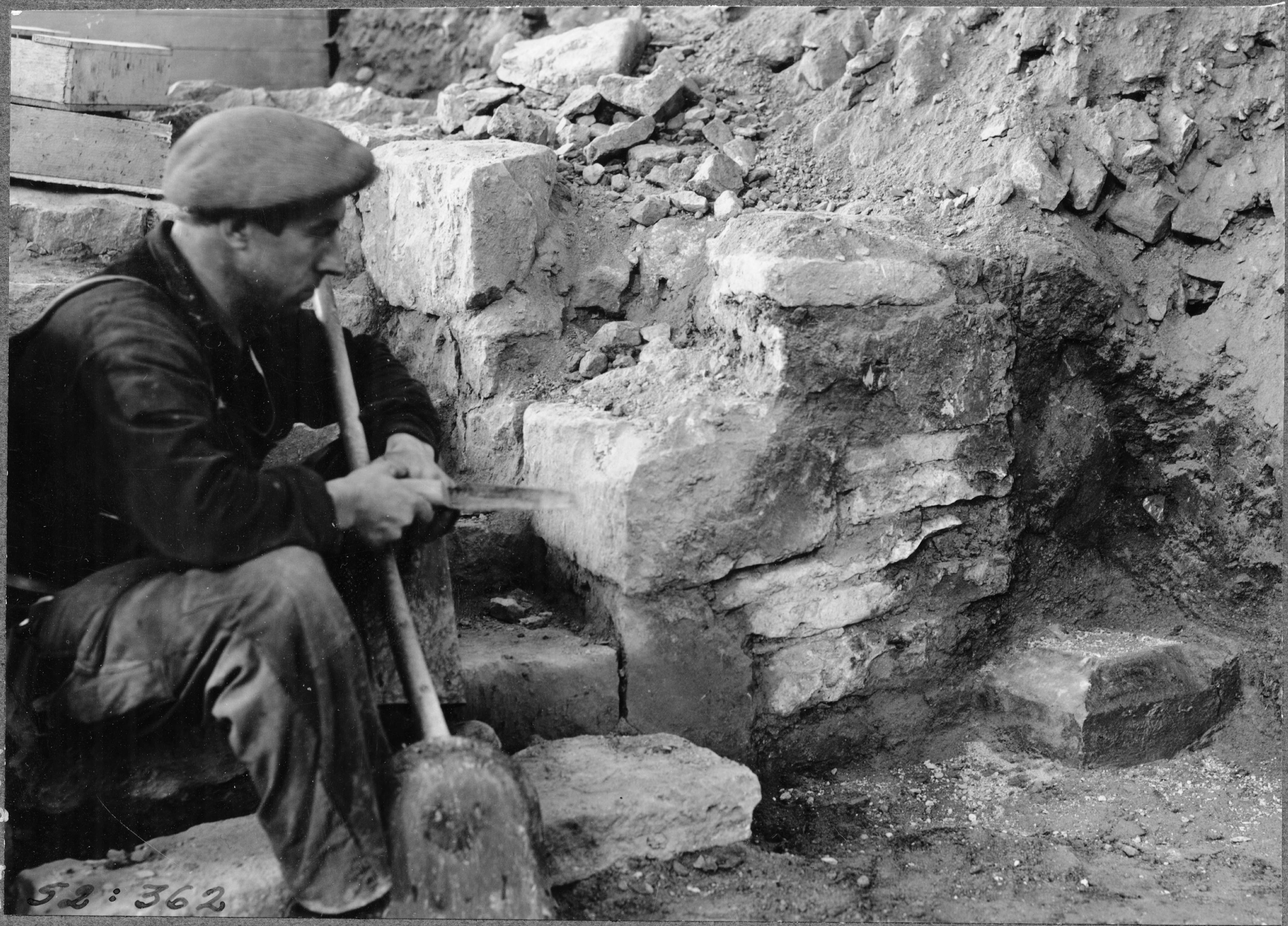 Grävning inom kyrkan, schakt X, nordvästra hörnpilasterns bas.