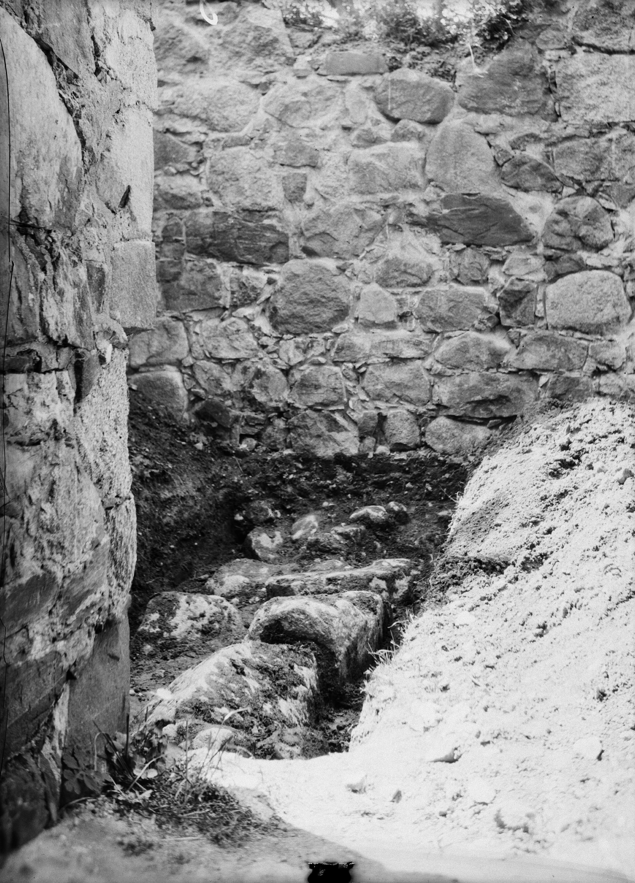 Det utgrävda södra arkadfundamentet från öster, norr om pelaren.