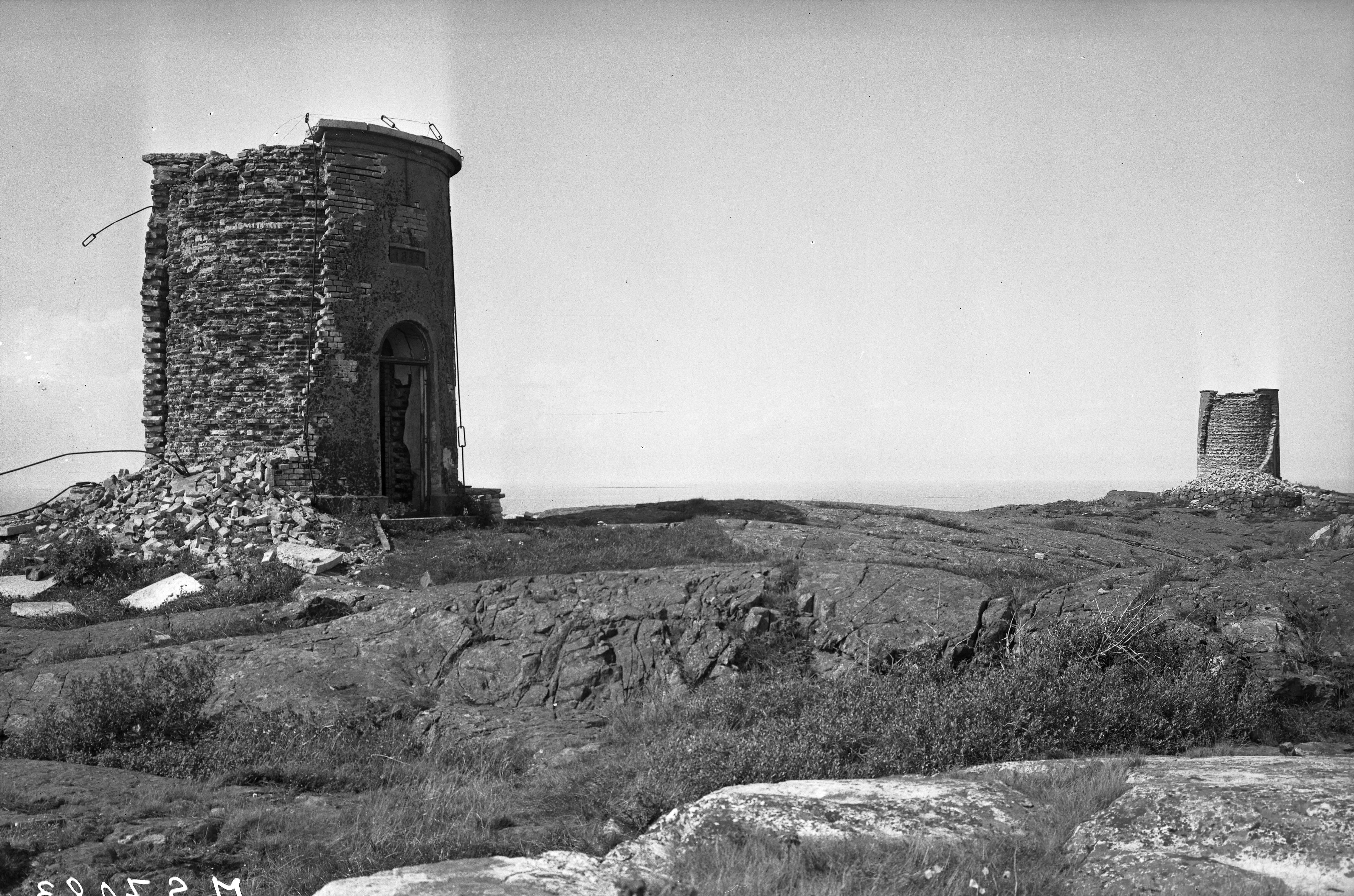 De övergivna fyrarna. Fyrarna tändes 1849, men släcktes redan 1891 på grund av att de var för högt placerade. Tjärnö 86:1.