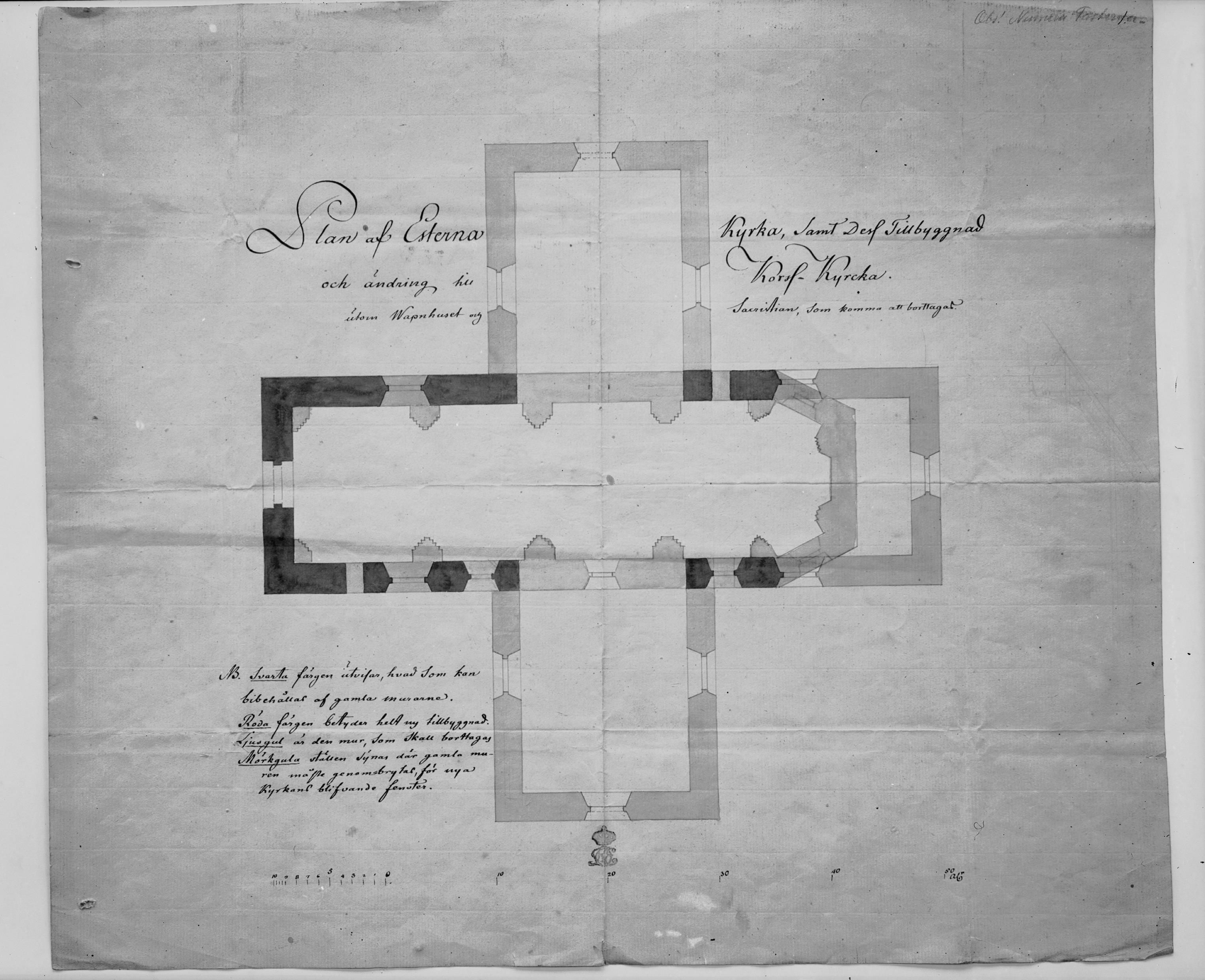 Ritning, förslag till ombyggnad. Foto efter planritning av Olof Tempelman (?).